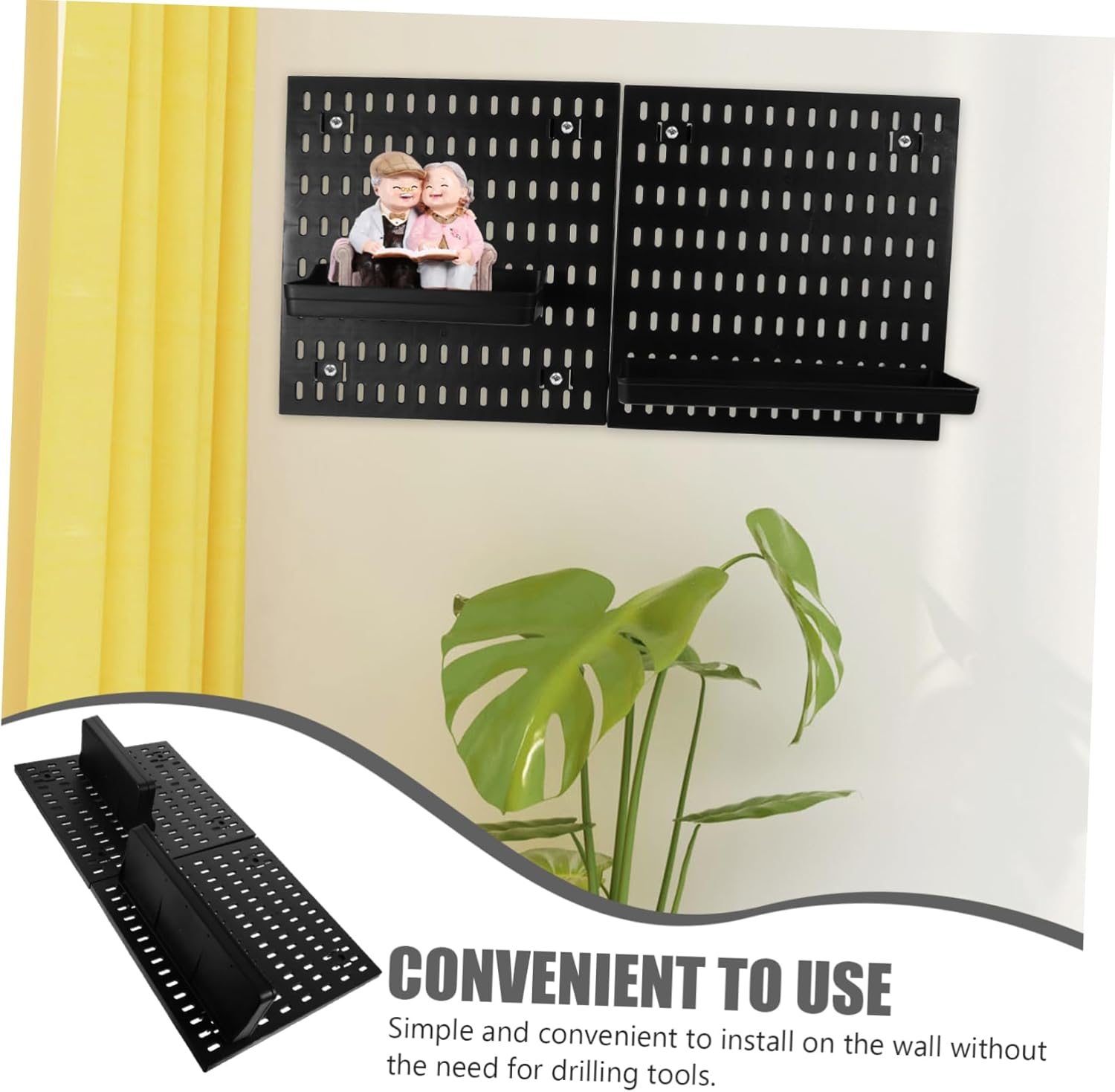 Package Include 2 x Pegboards 1 x Large Size Shelf 1 x Medium Size Shelf 5 x Hooks Features - No drilling installation: Simple and convenient to install on the wall without the need for drilling tools pegboard combination kit. -Material:Plastic craft pegboard wall organizer -Color:Black pegboard wall organize - Stylish decoration: The black pegboard set is fashionable and minimalist, adding a to your room pegboard kit. - Multi-functional design: This pegboard set is suitable for kitchen, bathroom, and more, making it easy to organize various items pegboard. -Size:30.00X30.00X1.00cm/11.79X11.79X0.39in multi-functional wall shelves - Strong load-bearing: Made from sturdy plastic materials, this pegboard can withstand heavy items, providing stability and reliability office peg board. - Space utilization: The wall hanging pegboard with hooks and shelves are intelligently designed to maximize wall space and increase storage capacity wall pegboard for home.Goods Informationplastic pegboard If you are looking professional and pegboard organizer, then your research is over here.pegboard shelf That's because our product can meet your need.wall pegboard for storage Adopted of plastic material, it is practical and for long time use.shelf pegboard It is not easy to get deformed and bring you much convenience