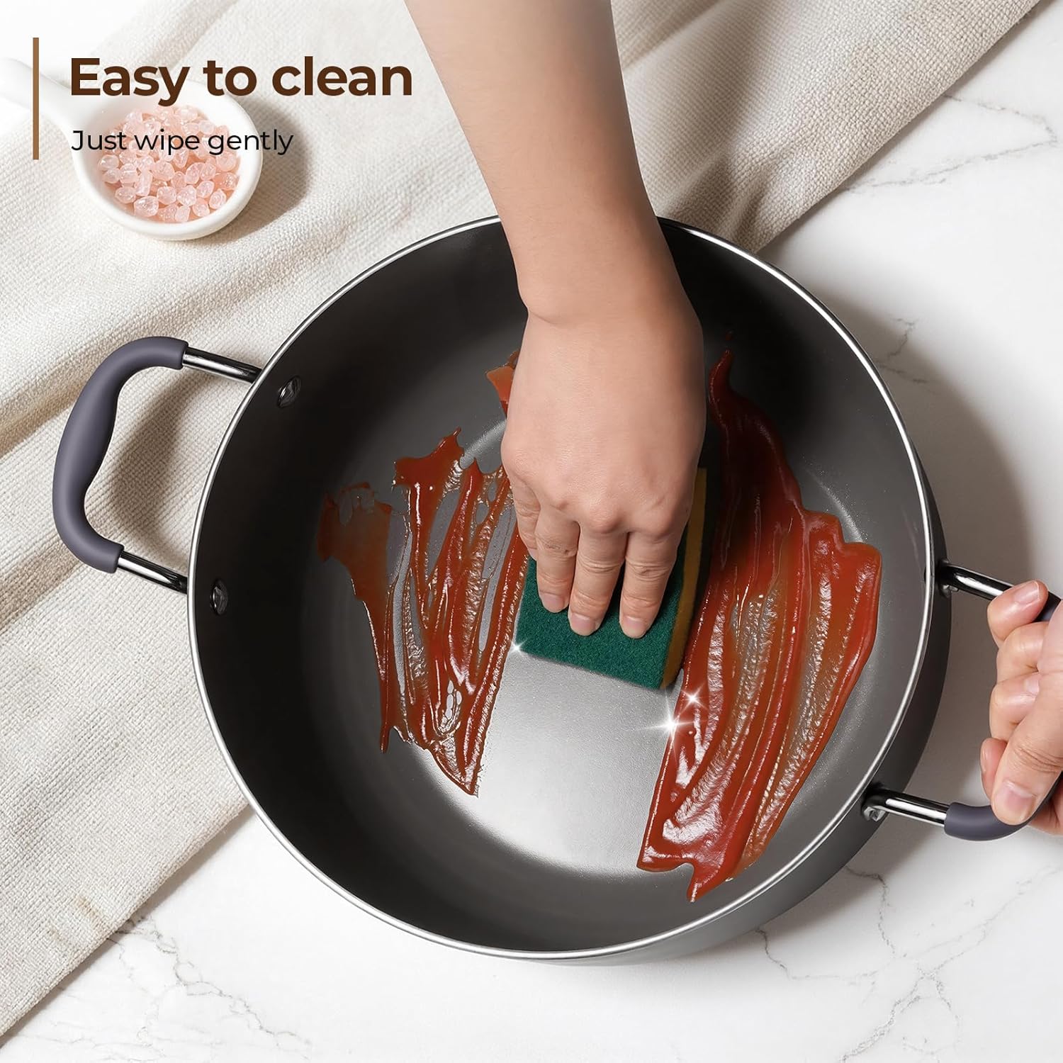 • This soup pot features a ceramic non-stick coating free of PTFE, PFAS, PFOA, lead, and cadmium, allowing you to enjoy healthy cooking with peace of mind.