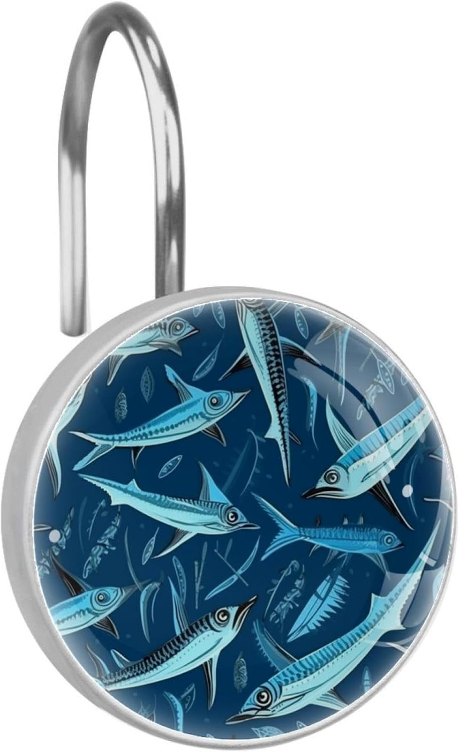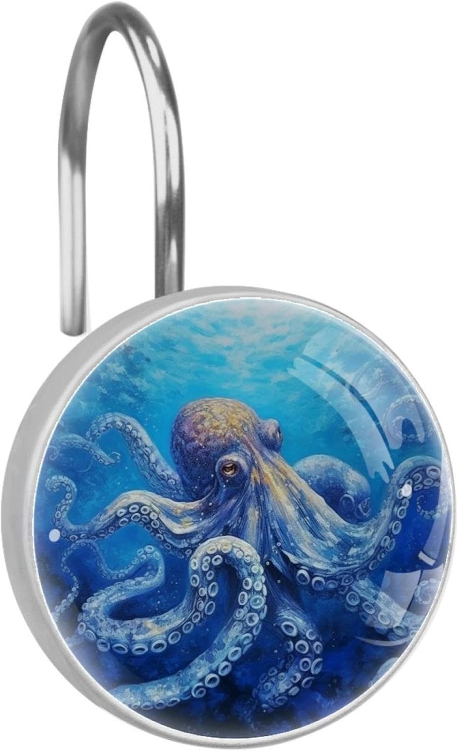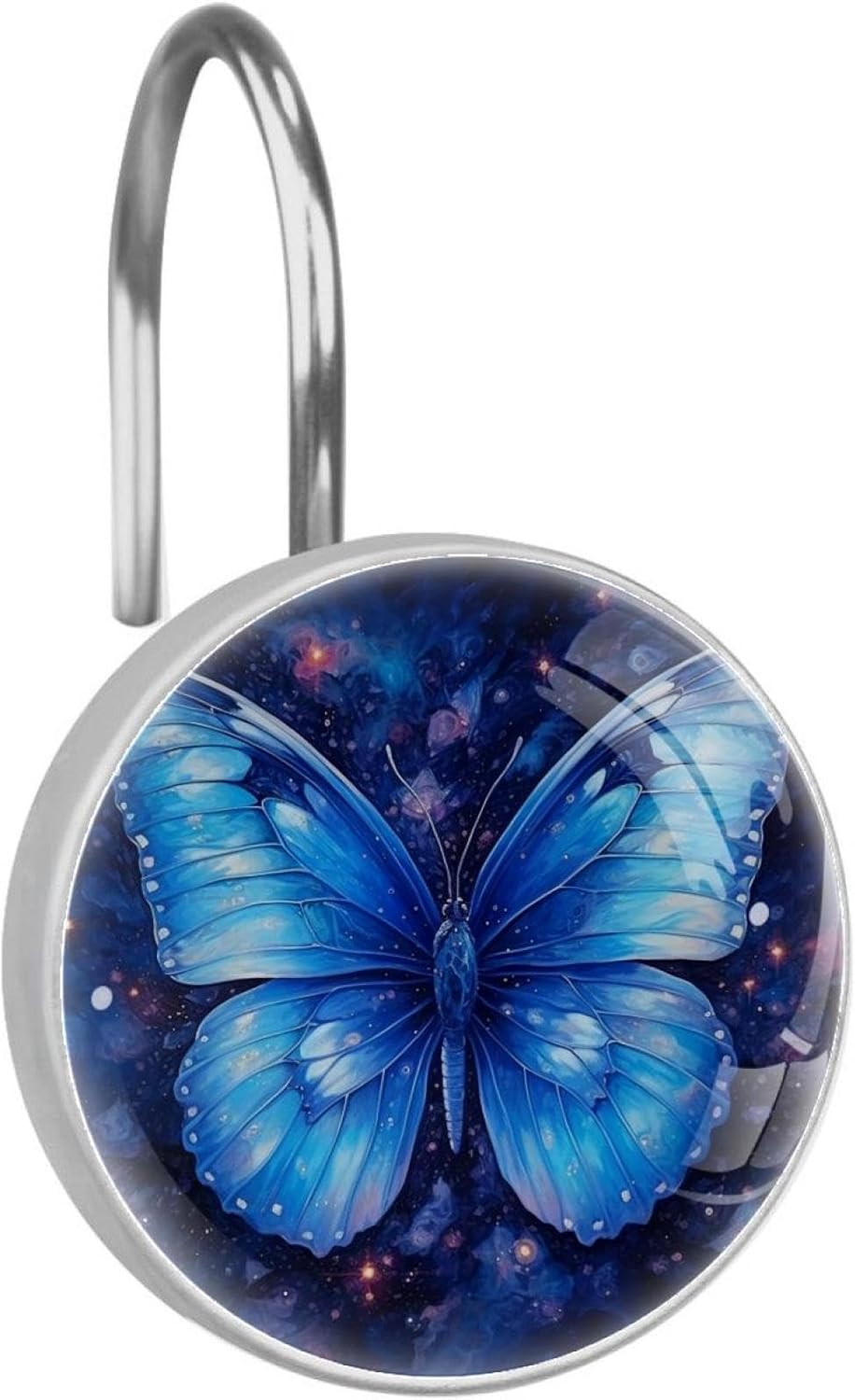Decorative Shower curtain hooks will decorate your bathroom with fresh effect; unique patterns have aesthetic look, decked out graceful & glamorous appearance to any space, creating a festive mood! Durable and long lasting design that won¡¯t detach or break when moderate stress is put on the curtain. The shower curtain ring is easy to install, just pass through the hole on the curtain and then hang it to the shower rod. The bathroom curtain hooks fit shower curtain rods with standard size on the market and suitable for most color rods and curtains in different styles. This set of 12 durable hooks attach easily to any standard shower curtain, liner, and rod system to keep the curtain securely attached and evenly draped. Perfect for your master, guest, or family bathroom.Features:Material: Stainless steel hooks, glass surfaces, patterned paper and resin side edgesQuantity: 12 x Shower Curtain HooksWeight: 0.85 lb shower curtain ringsAvailable for 0.3"-1.1" (8-28mm) diameter rod.Easy to through existing holes and hang over shower rod.Durable Quality & Attractive Appearance.Cute Bathroom Accessories: Ideal gift for Christmas, holidays and anniversary.Slide Easily and Smoothly: Hangs both shower curtain and liner for easier handling.