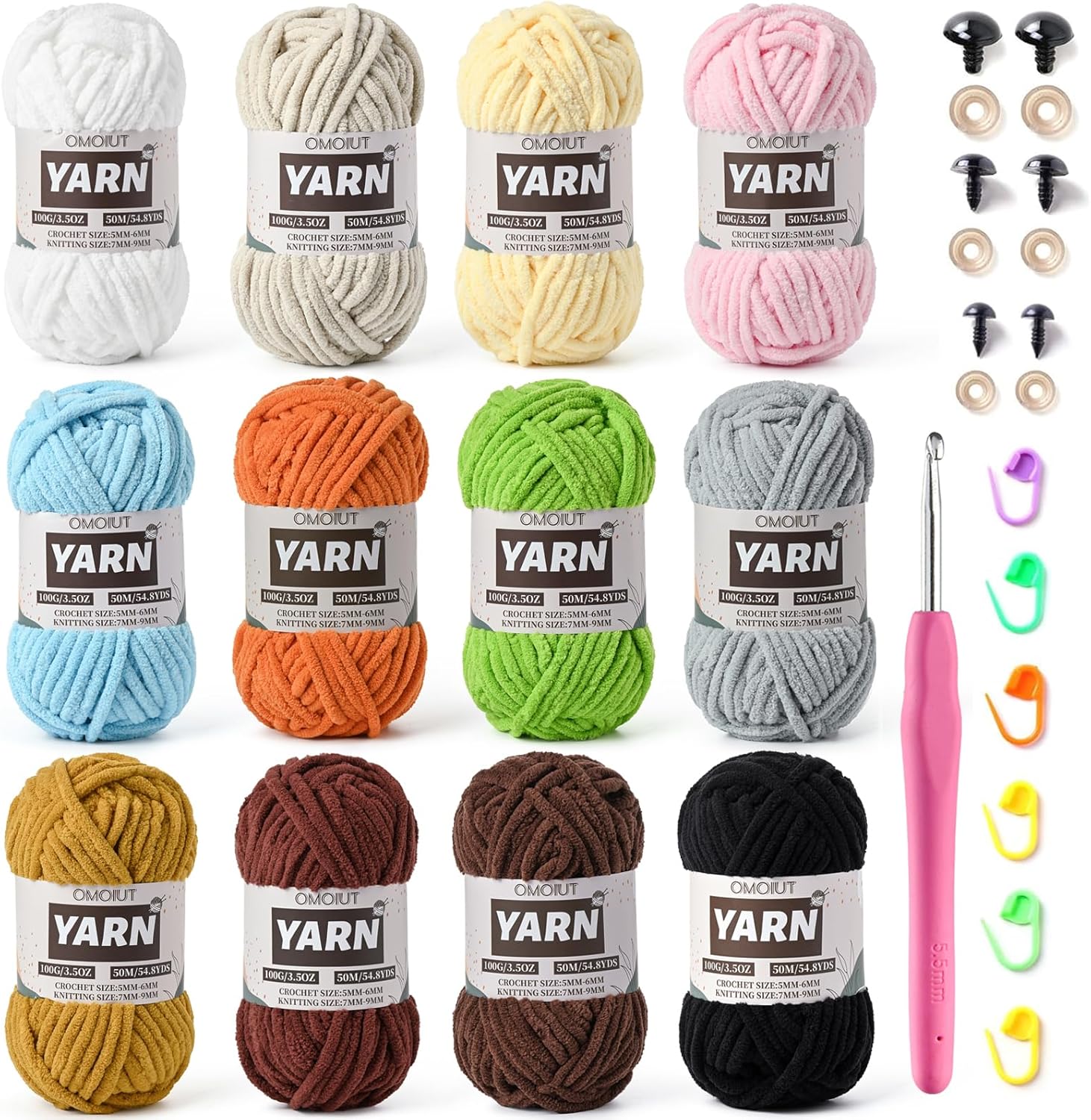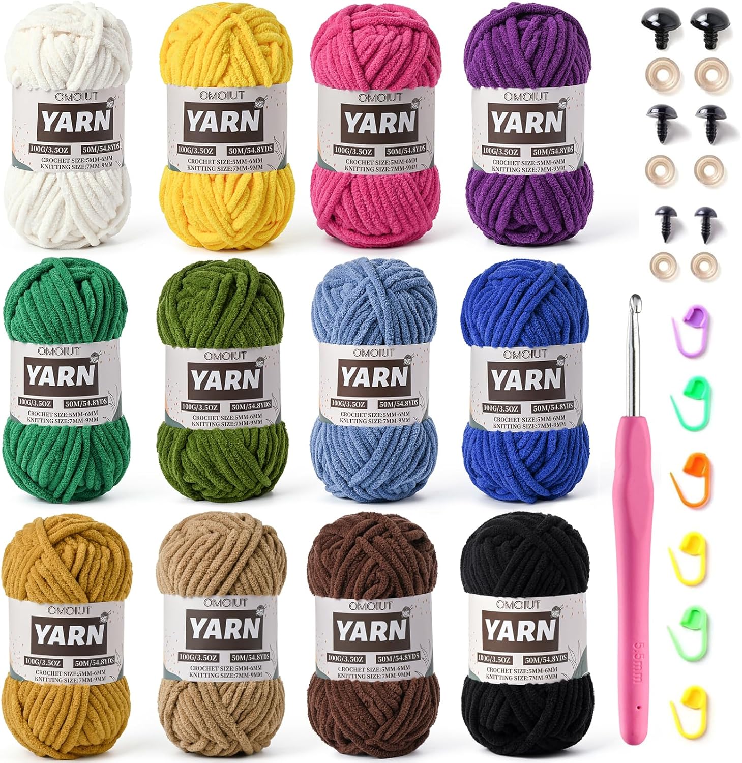 This chunky chenille yarn comes in 50-meter/54.8-yard skeins weighing 100 grams/3.5 ounces. Recommended for use with 5mm-6mm crochet hooks and 7mm-9mm knitting needles. Crafted from premium polyester fiber through a specialized process, this bulky yarn for crocheting features a fluffy, soft texture with a smooth texture. The fluff treatment yields a substantial feel, making it suitable for both beginners and experienced crafters.After washing the baby blanket yarn, lay the fuzzy yarn flat to air dry in a well-ventilated area or in the shade. Do not use a dryer or expose to direct sunlight to preserve the yarn's original soft texture and color.
