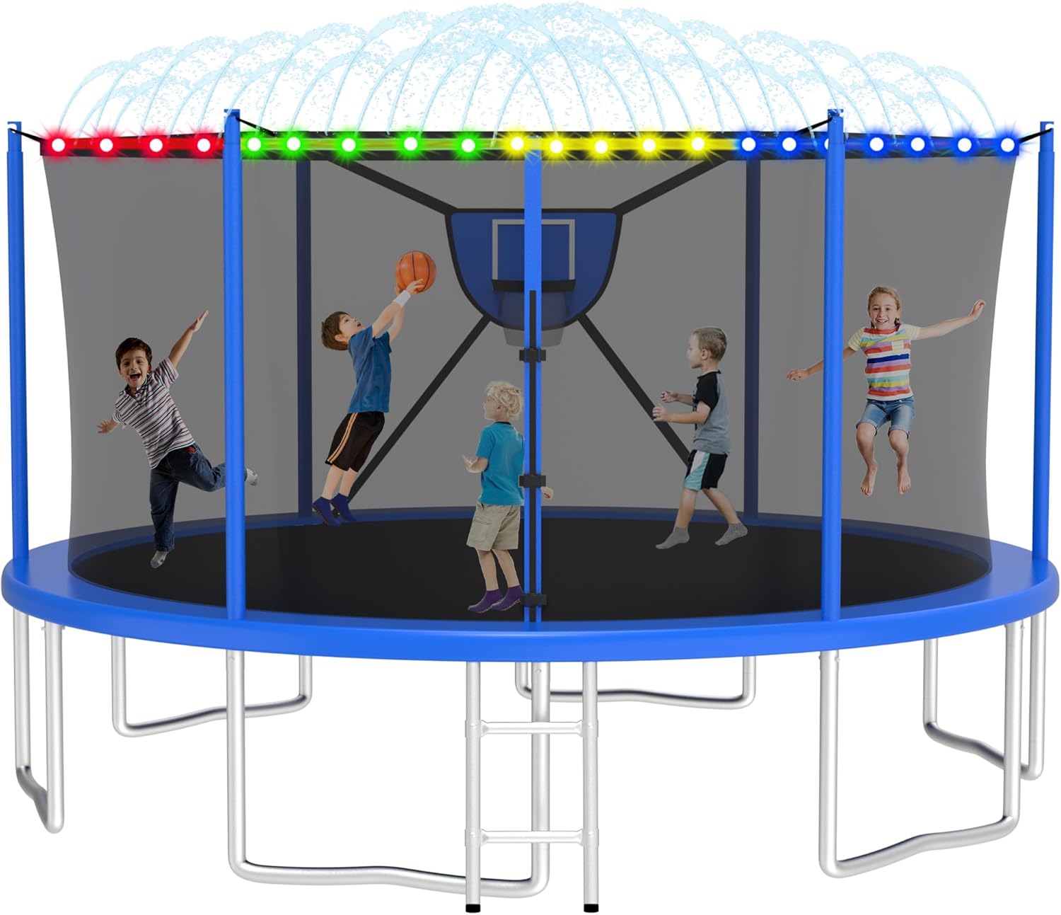 • 【Super Fun from Elitezip】Trampoline for kids and adults comes with a flexible basketball hoop to enhance your jumping and shooting experience. With 16 colors and 10 modes, the trampoline's built-in lights provide endless fun for kids even at night. For hot summer days, trampoline with sprinkler system can lower the temperature by up to 25 degrees, creating a mini water park in your backyard for your kids to play and stay cool. Get ready for an unforgettable outdoor experience with Elitezip!
