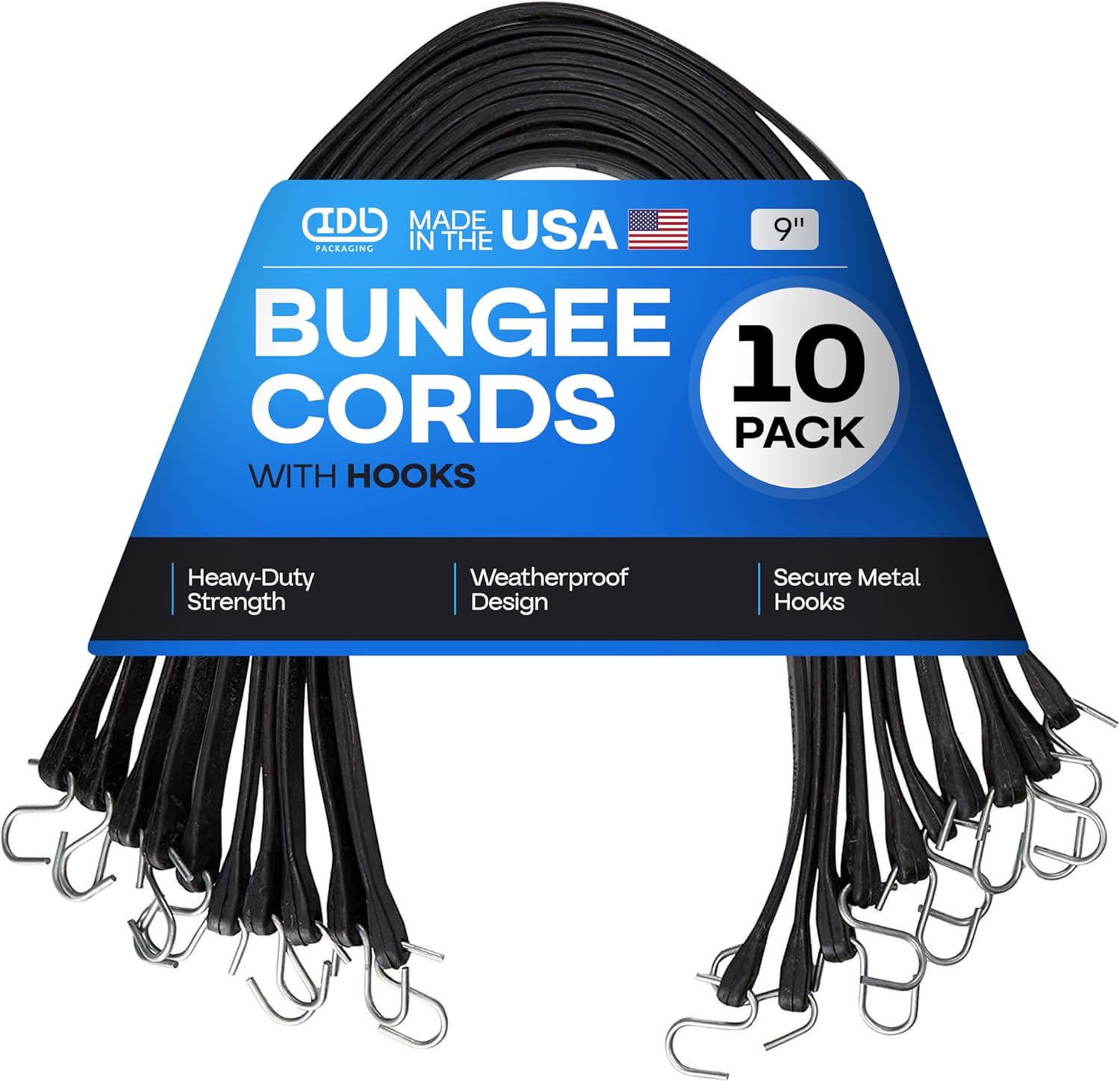 Upgrade your tie-down solutions with our premium EPDM heavy duty bungee cords with hooks, built for durability, flexibility, and all-weather reliability. Thicker and stronger than standard bungees, our tarp straps with hooks resist UV damage, cracking, and wear, staying dependable through long-term outdoor use. Each flat bungee cord with hooks stretches up to 1.5 times its length without losing tension, securing loads of any shape or size with ease. Reinforced, rust-resistant S-hooks lock firmly in place, keeping your cargo stable whether for short drives or long hauls. Designed to perform in any season, these rubber tie downs stay flexible in freezing cold, blazing heat, rain, or snow. Perfect for flatbeds, trailers, camping, gardening, or home use, our outdoor bungee cords offer versatile strength for work, travel, and everyday life. The simple hook-and-stretch design makes fastening quick and effortless - no knots, no slipping cords, just secure rubber bungee cords with hooks you can trust. With years of expertise in fastening solutions, IDL Packaging delivers tie down straps with hooks built on strength, reliability, and consistency. Trusted by both professionals and homeowners, we stand behind products that never compromise on quality.
