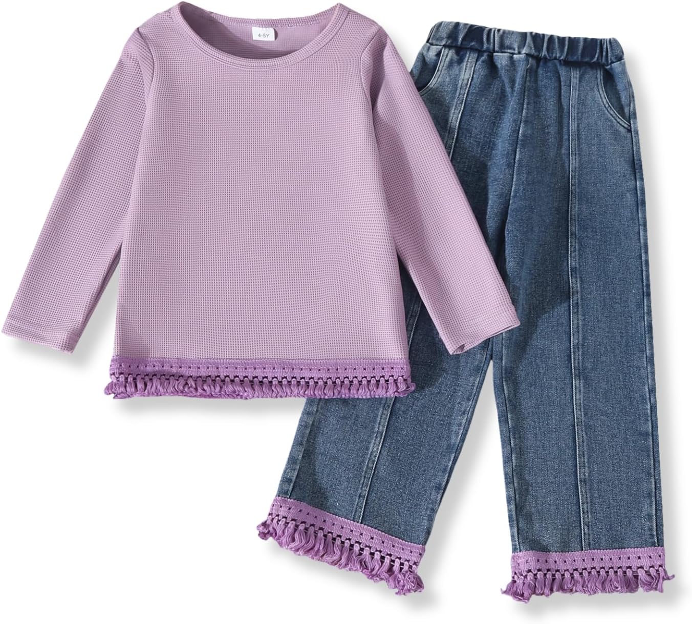 • Comfy Cotton Blend Fabric: Long sleeve top with tassel design + washed denim pants, soft, breathable & skin-friendly for all-day wear.