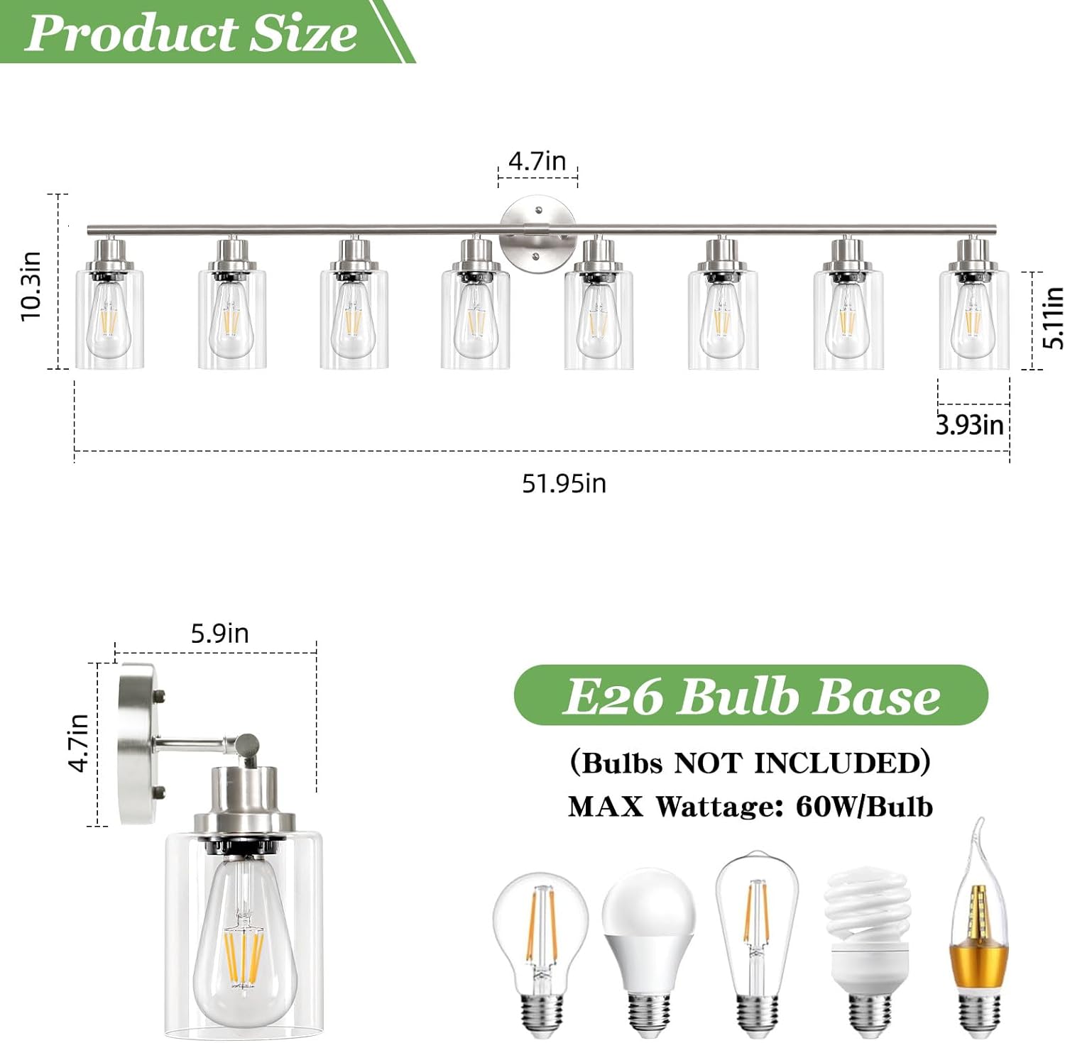 | Light Source | Incandescent, CFL, halogen, LED bulbs |