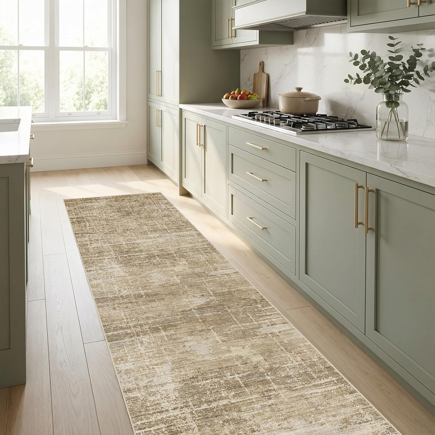 Abstract Stylish Design: Featuring a sophisticated abstract design in a versatile neutral palette, this kitchen runners non skid washable 6ft adds an artistic touch to hallways, kitchens, entryways, and beyond. It's the perfect foundation to tie any room together with understated style.