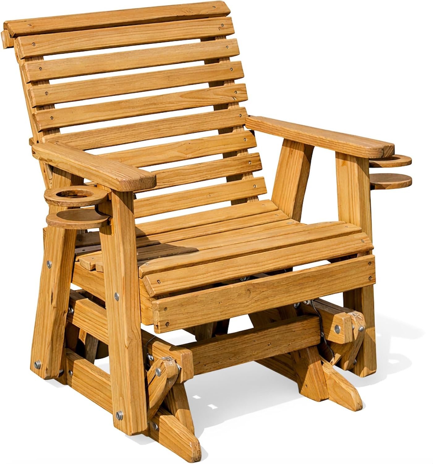 Designed for smooth, quiet relaxation, this Amish-made porch glider combines traditional woodworking with precision glide mechanics to create a seating experience that feels stable, controlled, and comfortable. Handcrafted from solid yellow pine, each glider is built to deliver dependable performance and long-lasting outdoor enjoyment. Precision-fit glide hardware and stainless-steel bearings work together to produce a calm, silent motion without jerking or binding. Heavy-duty glide arms distribute weight evenly across the frame, helping maintain balanced movement and structural integrity during regular use. Whether used as a compact single-seat glider or a spacious multi-seat bench, the result is consistent comfort with reliable glide control. Every glider is individually built by Amish artisans using time-honored construction techniques, then paired with modern mechanical components engineered for outdoor environments. Corrosion-resistant stainless-steel fasteners help maintain stability and smooth operation through changing weather conditions. Available in multiple sizes to suit different spaces and seating needs, this porch glider is well suited for porches, patios, decks, and backyard settings. From quiet solo relaxation to shared family seating, it delivers a durable, comfortable glide designed for everyday outdoor living.