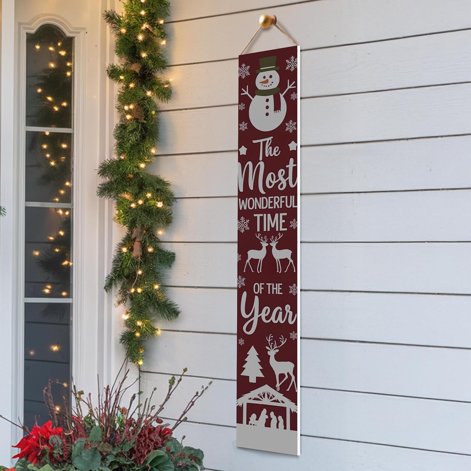 "Celebrate the magic of Christmas with our holiday welcome sign, 48"" x 8"". Perfect for your front porch, this Christmas-themed welcome sign brings joy and warmth to your home’s entrance, greeting family, friends, and guests with a touch of holiday cheer. Featuring elegant holiday-themed typography, this sign creates a warm and inviting atmosphere right at your doorstep. Made from premium-quality PVC, the sign is 0.5"" thick, ensuring durability for all kinds of winter weather. It’s weather-resistant, which means the bright and festive colors will remain vibrant throughout the season, come rain, snow, or frost. The classic holiday design complements any home decor style, from rustic farmhouse charm to modern sophistication, making it a timeless addition to your Christmas decorations. This sign makes an ideal holiday gift for loved ones, friends, or new homeowners. Share the joy of the season with a gift that enhances their holiday decor and welcomes their guests with warmth and love. Proudly printed in the USA, our sign supports local craftsmanship and maintains the highest quality standards. Add a touch of Christmas charm to your home and make every arrival special. Order your 48"" x 8"" Christmas Welcome Sign today and bring festive cheer to your porch!"