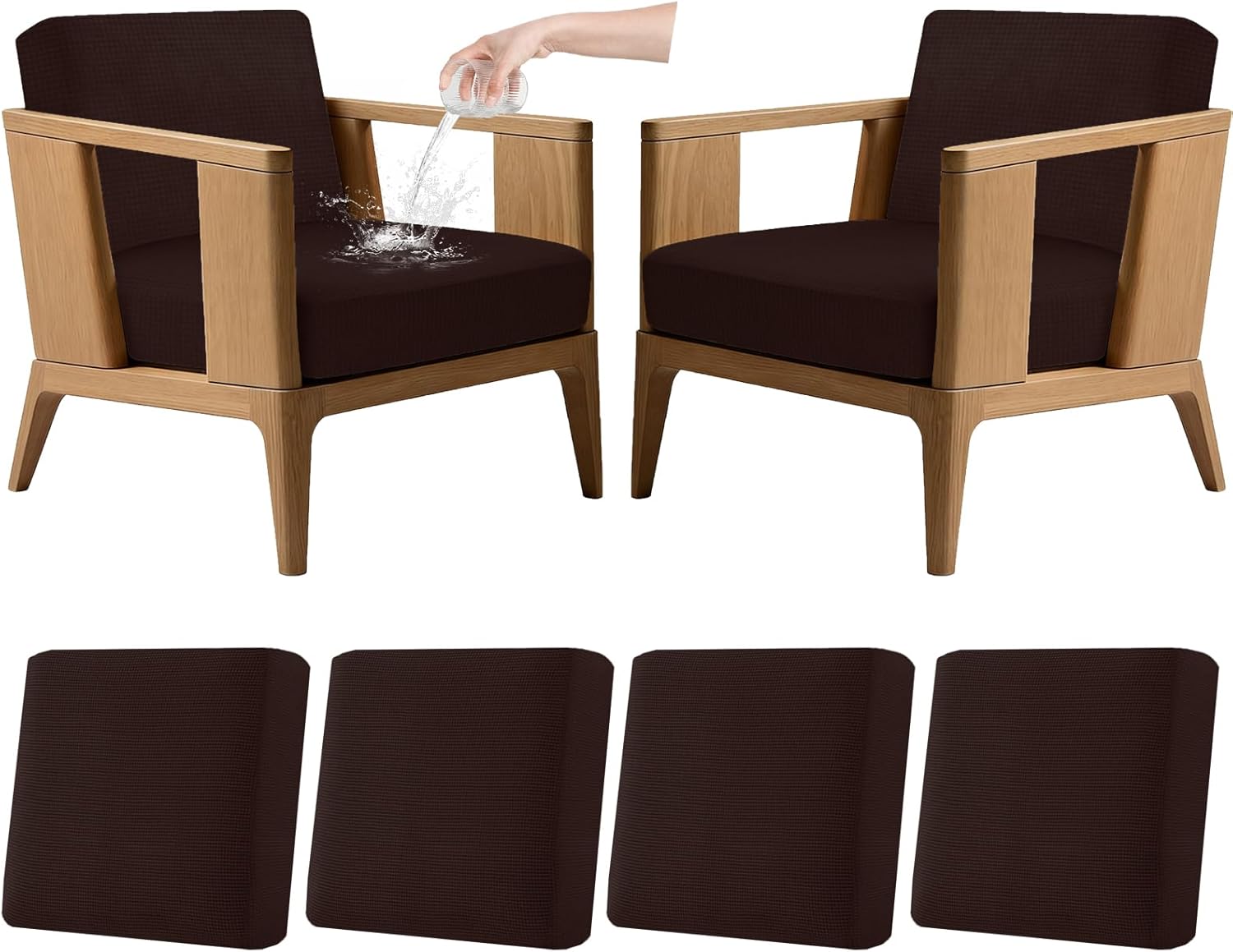 Upgrade your outdoor living space with this set of 4 waterproof jacquard patio cushion covers, designed to give your furniture a fresh, polished look while providing reliable protection. These stretch slipcovers are crafted to fit snugly over square sectional chair cushions, making them a perfect replacement option when your existing covers show signs of wear and tear. The jacquard fabric adds a touch of texture and style, while the waterproof construction helps shield your cushions from spills, moisture, and the elements. Designed with convenience in mind, these covers are both washable and reusable, making maintenance a breeze. Simply remove, wash, and reuse them season after season. The stretchy material ensures a smooth, wrinkle-free fit across a variety of cushion sizes, keeping your patio seating looking neat and inviting. Whether you're refreshing your couch, sectional, or individual chairs, this 4-piece set offers a practical and stylish solution for protecting your outdoor furniture. Ideal for patios, decks, and garden seating areas.
