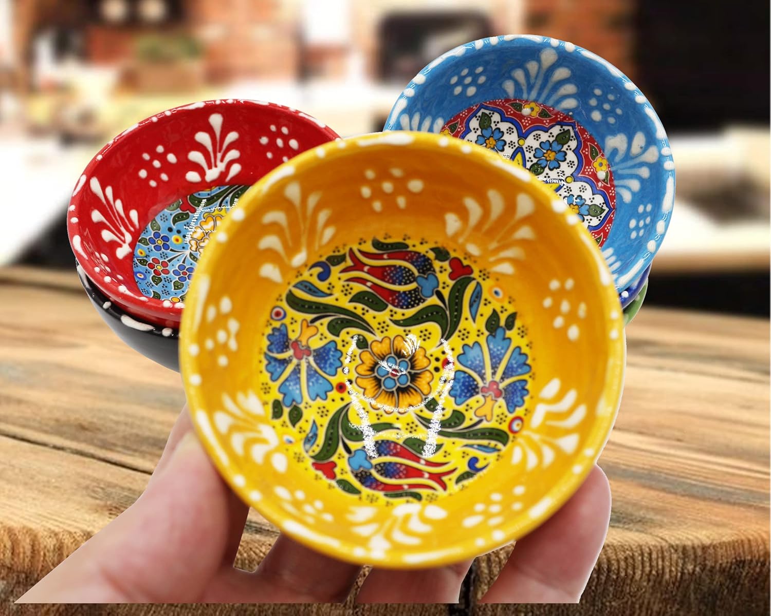 // SilverCraft 6 Pcs Hand Painted Decorative Serving Turkish Tiny Bowls - Handmade Ceramic Bowl - Set of 6 (3.3''inc/8.5cm) 2.5 Oz Pinch Multicolor Small Serving Bowls - Best Gift Set // Unique Decorative Accessory designer bowls are built in Turkish desing and can be used as decor item. Ceramic bowls are suitable acceeory for mixing wet or dry ingredients, microwave, oven, freezer and dishwasher safe // This Special Bowls look with hand painted colors will make your table look amazing. The patterns on it were meticulously processed. It protects the color vitality and texture for many years. A stylish product that you can give to your loved ones and friends // Also please consider that all pieces are handmade so they slighty differ from each other // A Serving Bowls're suitable for ice cream custart snack small portion of fruit. Also perfect for parties to present ketchup, soy sauce and other flovorful condiments