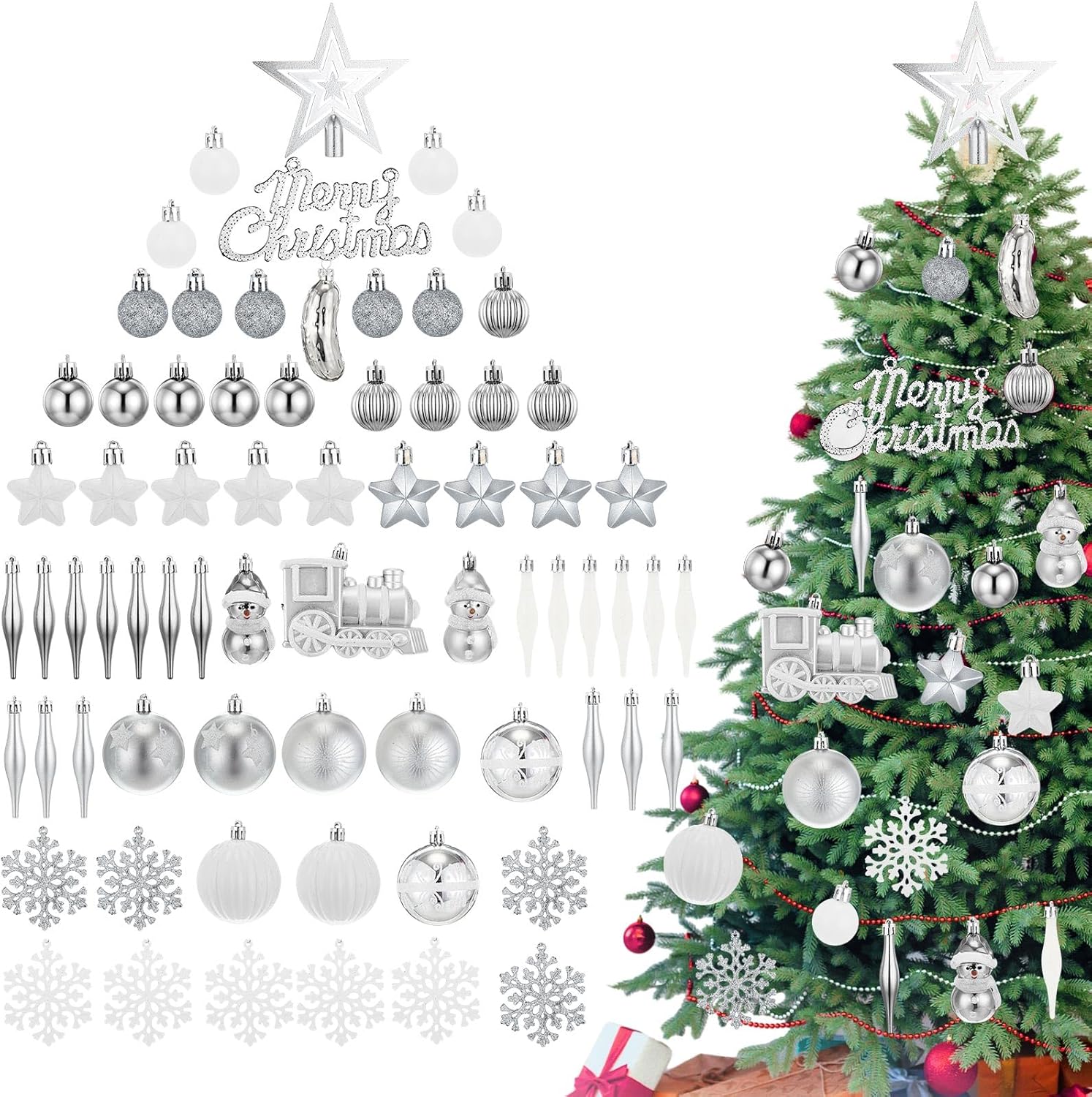 Features: East to store and carry: Most of the Christmas tree ornaments set are well packaged in a house shape box, so that is convenient for you to carry and store, and save your store space. Holiday gift: These vintage Christmas tree ornaments can be shared with your family members, neighbors, colleagues, relatives at holiday parties, home gatherings, Christmas, New Year, etc. Specifications: Main material: plastic, glass Color: as pictures shown Size: as pictures shown Package includes: 73 x Christmas tree ornaments Notes: Manual measurement, please allow slight errors on size. The color may exist a slight difference due to different screen displays. Pointed parts included, please keep away from children. Glass products included, please use them carefully.