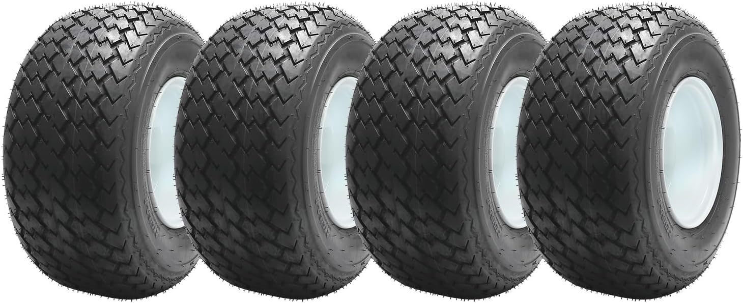 Keep your golf cart, electric patrol vehicle, tour cart, or riding mower rolling with confidence. This 215/60-8 tubeless tire and white steel wheel assembly is pre-mounted, pre-balanced, and ready to install — giving you a clean, direct replacement without the hassle of sourcing a tire and rim separately or paying a shop to mount them.Built to carry real loadsAt 6-ply (Load Range C), this tire is rated for 475kg (1,050 lbs) — well above the capacity of most standard 4-ply golf cart tires. The 5-ply nylon tread and 2-ply sidewall construction handle the repeated start-stop cycles of patrol routes, sightseeing tours, and real estate showings without premature wear or sidewall bulging. Recommended cold inflation: 34 PSI.Turf-friendly diamond treadThe 215/60-8 (18×8.50-8) diamond tread pattern is a proven design for mixed-surface use. It rolls quietly on cart paths and pavement, delivers reliable grip on packed dirt and light gravel, and distributes weight evenly on grass to minimize turf damage. Whether your cart works a golf course, a resort, a farm, or a suburban lawn, this tread pattern handles the job without leaving ruts behind.Clean white steel rim, ready to fitThe white powder-coated steel rim uses a 4×101.6mm (4×4 inch) bolt pattern and 73mm center bore — the most common specification across Club Car DS, EZGO TXT/RXV, G-Series and Drive, and most electric patrol and tour vehicles. Lug hole diameter is 14.5mm to fit standard lug nuts. Overall assembled dimensions: 445mm (17.5") tall × 235mm (9.3") wide. Rim width: 210mm (8.3").Specifications summary:Tire size: 215/60-8 (18×8.50-8) · Ply: 6PR Load Range C · Max load: 475kg / 1,050 lbs · Cold pressure: 34 PSI · OD: 445mm / 17.5" · Width: 235mm / 9.3" · Rim width: 210mm / 8.3" · Bolt pattern: 4×101.6mm · Center bore: 73mm · Lug hole: Ø14.5mm · Rim color: White steel · Tire type: Tubeless · Sold individually