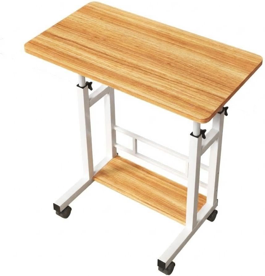 Product Name:Adjustable Height Mobile Standing DeskProduct advantages:1.Adjustable Height & Easy Move: This mobile laptop desk adjusts from 27.16" to 35.43" to help you find the perfect working height and easily switch between sitting and standing. Equipped with four smooth-rolling wheels, it glides effortlessly so you can move it wherever you need.2.Large Desktop Space: The 31.5" L x 15.75" W desktop offers plenty of room to work or study. Use it as a small dining table, laptop desk, study desk, serving table, or an adjustable computer workstation. The thickened metal frame and E-class eco-friendly MDF board provide strong weight support and reliable stability.3.Easy Assembly, Buy with Confidence: All tools, hardware, and instructions are included for quick, straightforward setup. Use this computer workstation as a portable presentation lectern, mobile standing computer desk, laptop desk, office table, and more in your office, living room, study, or bedroom.4.Multiple Color Options: Available in several stylish colors to suit different decorative style and preferences. From classic neutrals to warm wood tones, you can choose the finish that best matches your home or office, creating a more coordinated, personalized workspace for any room.5.Bottom Storage Shelf: The lower shelf adds practical storage to keep items off the desktop and within easy reach. Store books, files, chargers, or a small printer to reduce clutter and stay organized. It also helps balance the cart and makes your workspace more efficient.