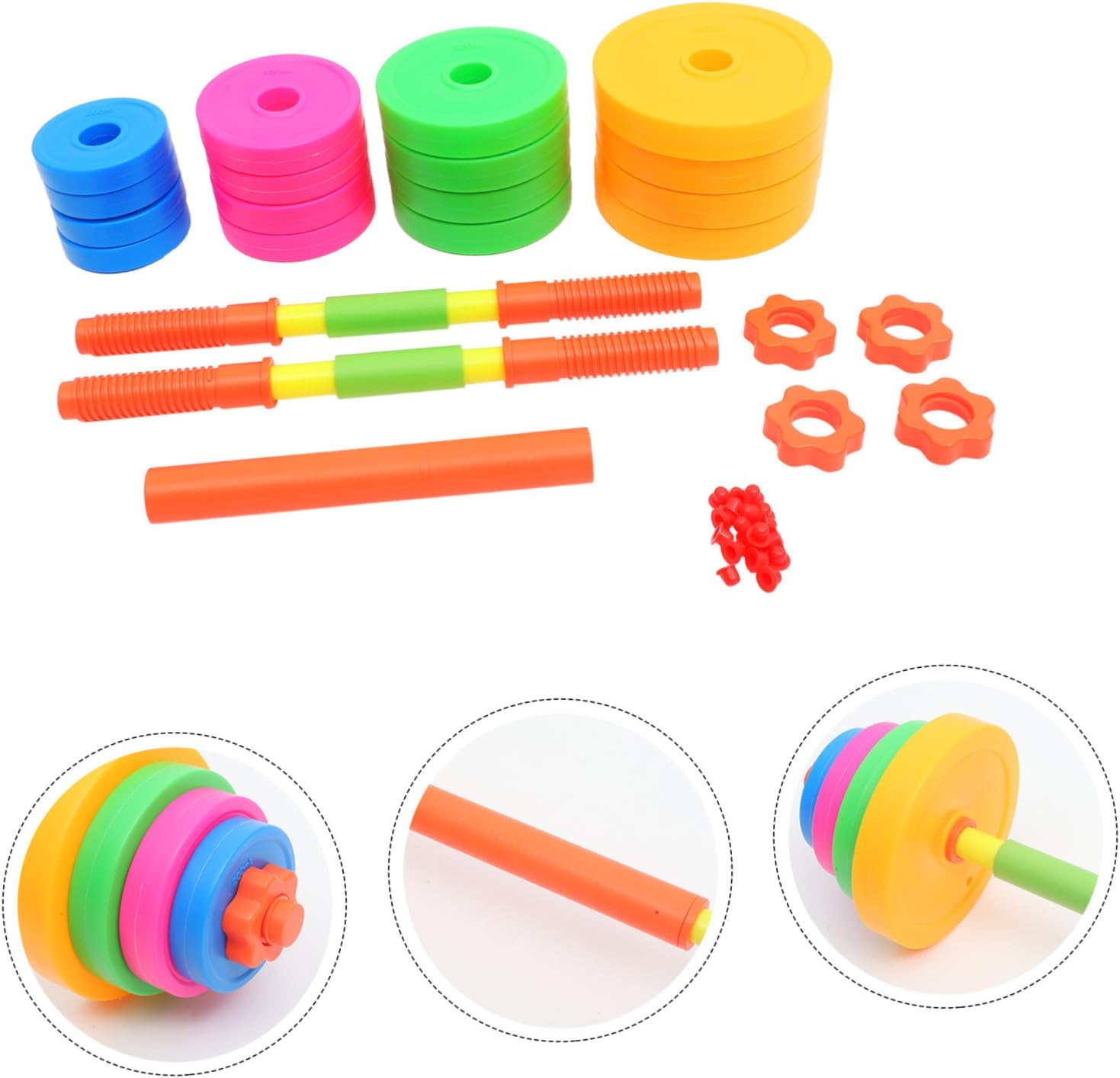 Package List 4 x 800ml yellow round plates 4 x 520ml green round plates 4 x 330ml rosy round plates 4 x 200ml blue round plates 4 x end 1 of silicone plugs 2 x nozzle 1 x straight tube Features -Size(The longest size after assembly):91.00X18.00X18.00cm/35.76X7.07X7.07in workout dumbbell -Color:Multi weights dumbbells -Material:Plastic dumbbell adjustable weights -Your can entertain themselves with this dumbbell for several hours adjustable weight. - or sand ensures stability and increased weight for effective workouts adjustable dumbbells. -A good fitness tool to train arm muscle and help grow up happily. Suitable for dance, performance, gymnastics, etc adjustable dumbells. -Funny and creative design makes it a perfect early arm training supply adjustable dumbbells. -It comes with simple and bright design, thus it can attract ' attention easily dumbbells adjustable.Goods Descriptiondumbbells Dumbbells can not only be used as exercise tools, but also as entertainment .adjustable hand weights Also, a your friends.dumbbells adjustable Made of plastic material, this set of fitness dumbbell is and to use, featuring lightweight and compact design, very portable to carry, which makes you more convenient