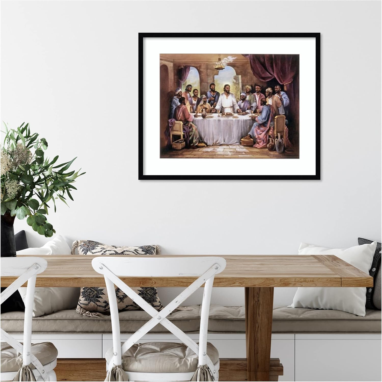 CUSTOM ARTWORK DETAILS: TITLE: The Last Supper; ARTIST: Quintana. DESCRIPTION: Decorate your wall with this beautiful African American print depicting The Last Supper. . OUTER SIZE: 32 in. W x 26 in. H. 100% REAL WOOD FRAME DETAILS: The Svelte Noir Black frame features a narrow frame with flat surfaces and a smooth matte black finish. This Amanti Art framed art print was created by Quintana and printed by Amanti Art in Madison WI. The print is giclee printed using fade-resistant inks for picture-perfect detail and incredible depth of color and finished with a 100% real wood frame. Individually made using traditional custom framing techniques, it has the quality you would expect from your local frame shop. Because of our attention to detail and focus on artistry, architects, interior designers, and homeowners alike choose this framed art print to create beautiful living spaces.
