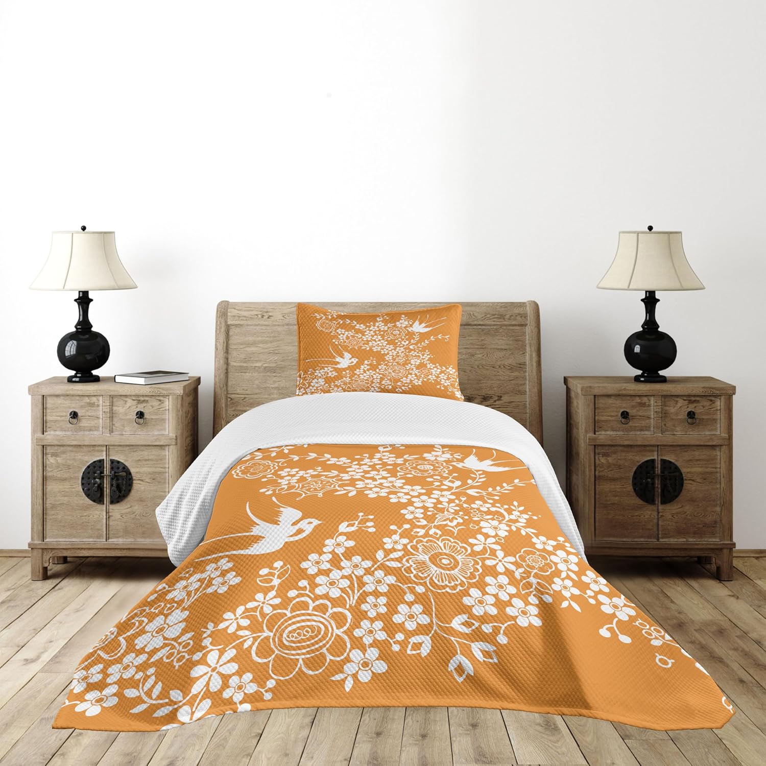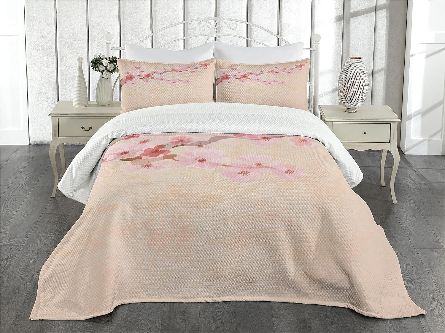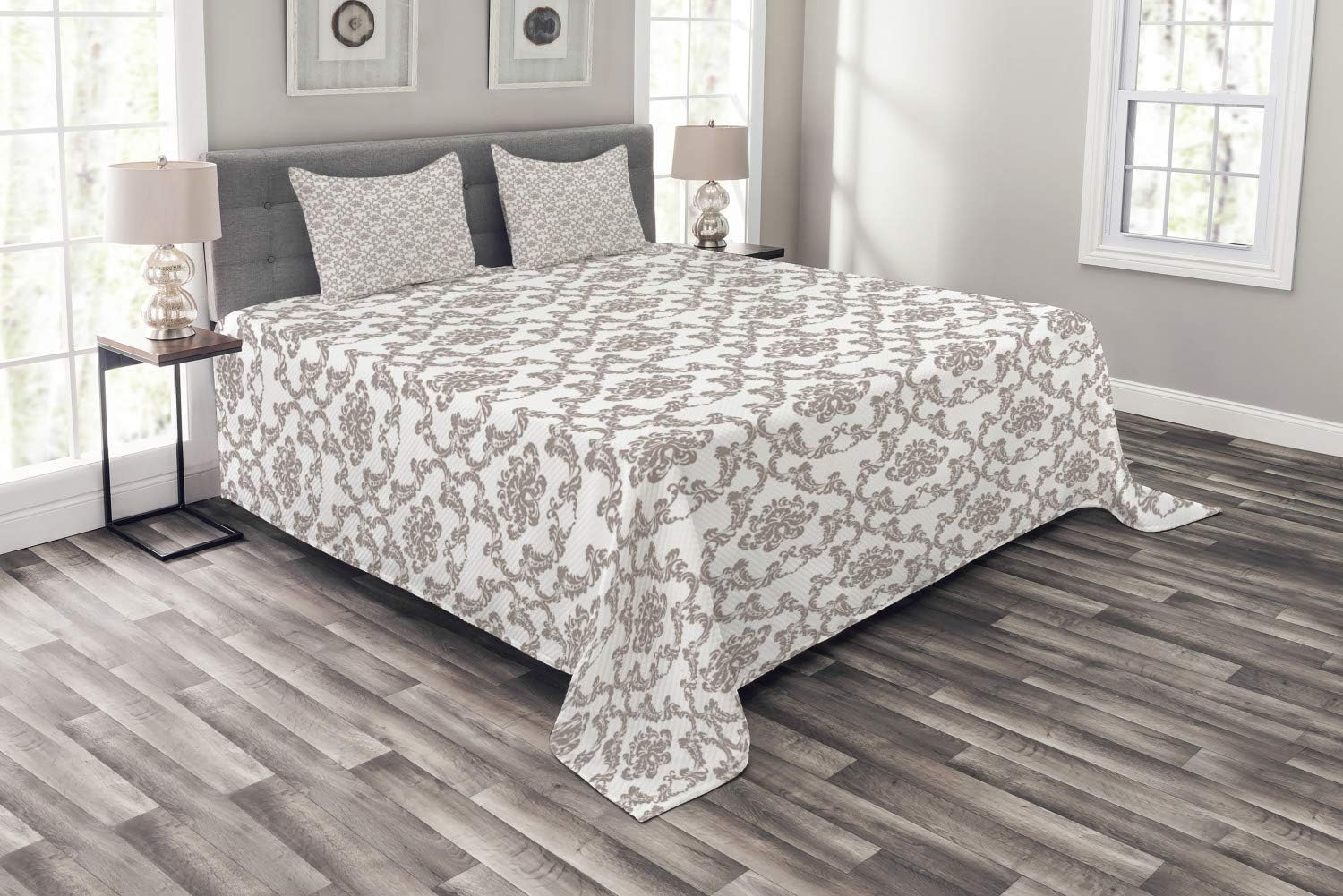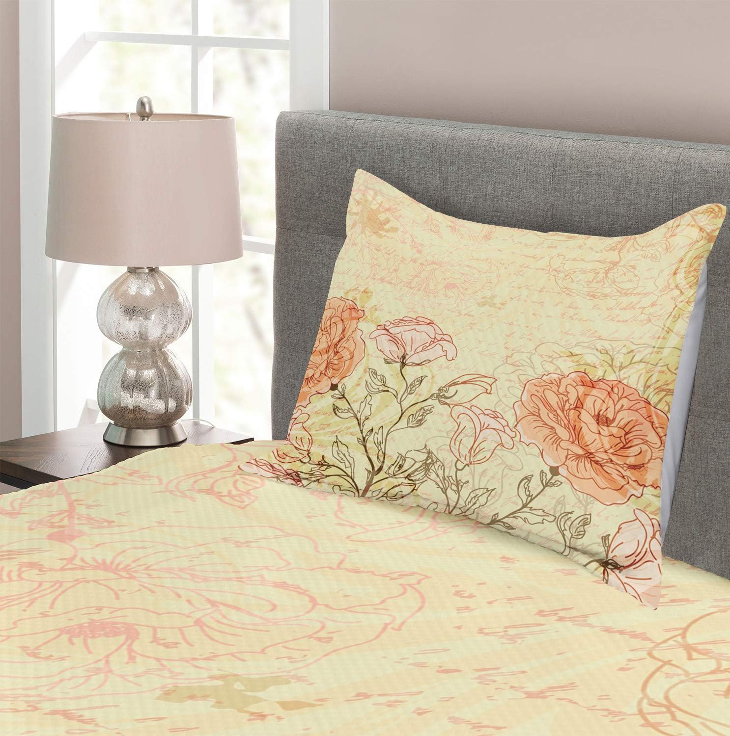 Ambesonne Dragonfly Bedspread, Lotus Flower Field Winged Bug Flying Oriental Blooms Print, Decorative Quilted 3 Piece Coverlet Set with 2 Pillow Shams, Queen Size, Cream Peach