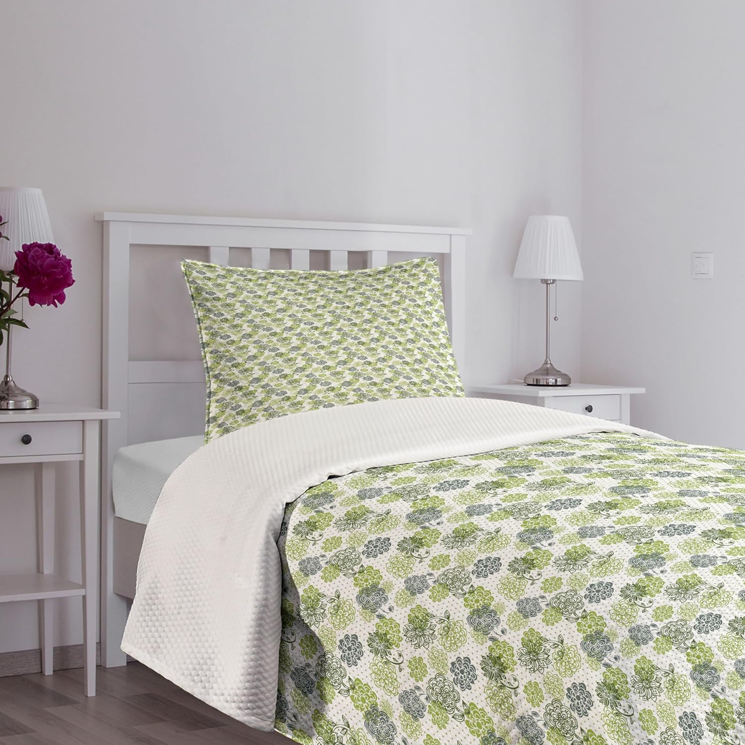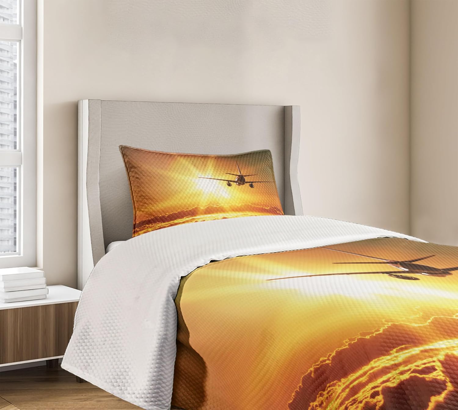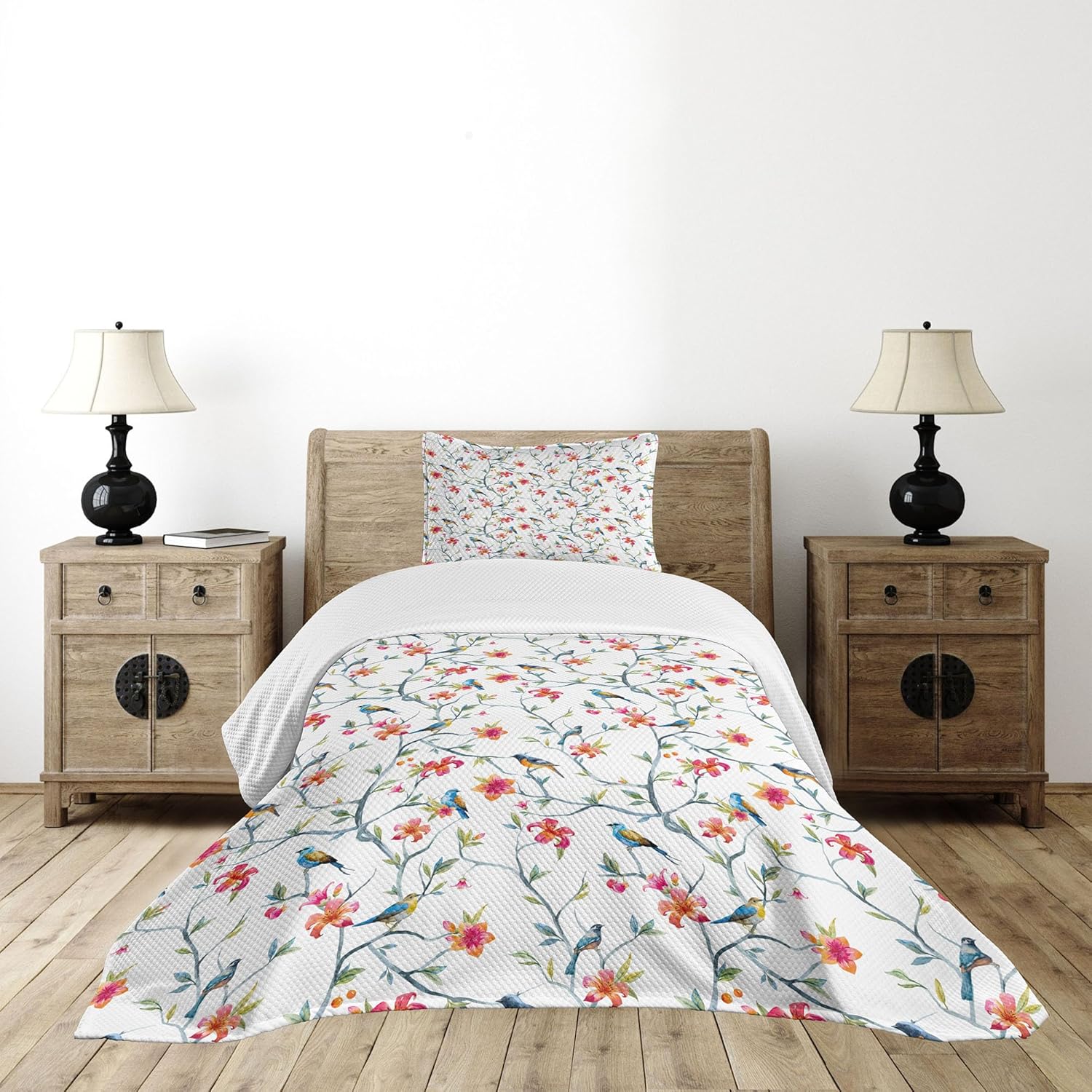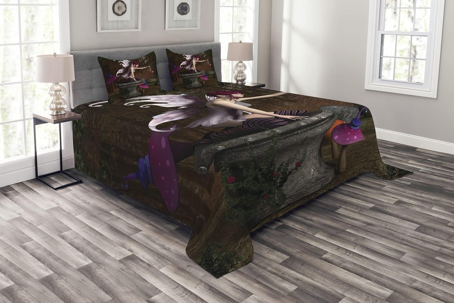 Ambesonne Dragonfly Bedspread, Lotus Flower Field Winged Bug Flying Oriental Blooms Print, Decorative Quilted 3 Piece Coverlet Set with 2 Pillow Shams, Queen Size, Cream Peach