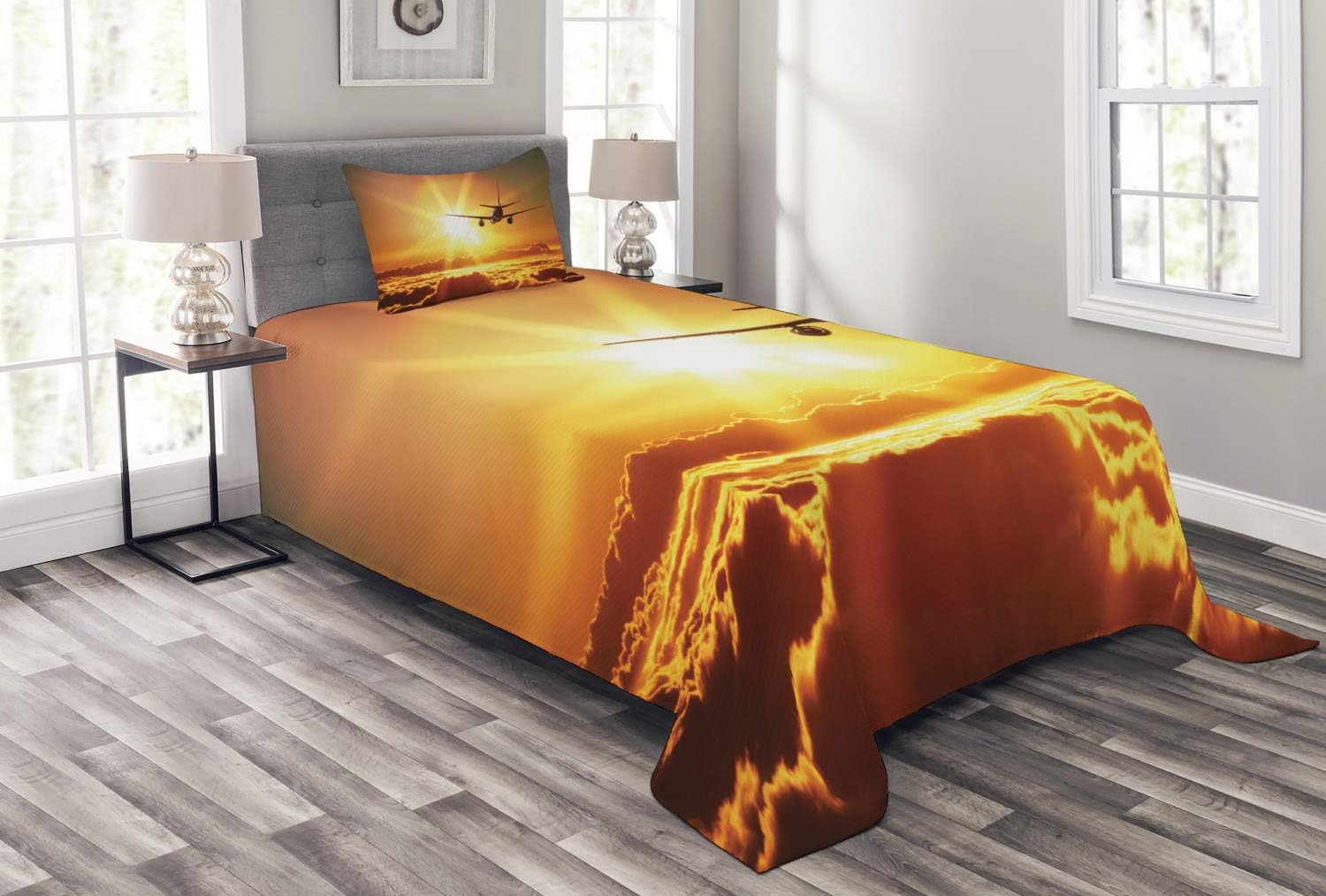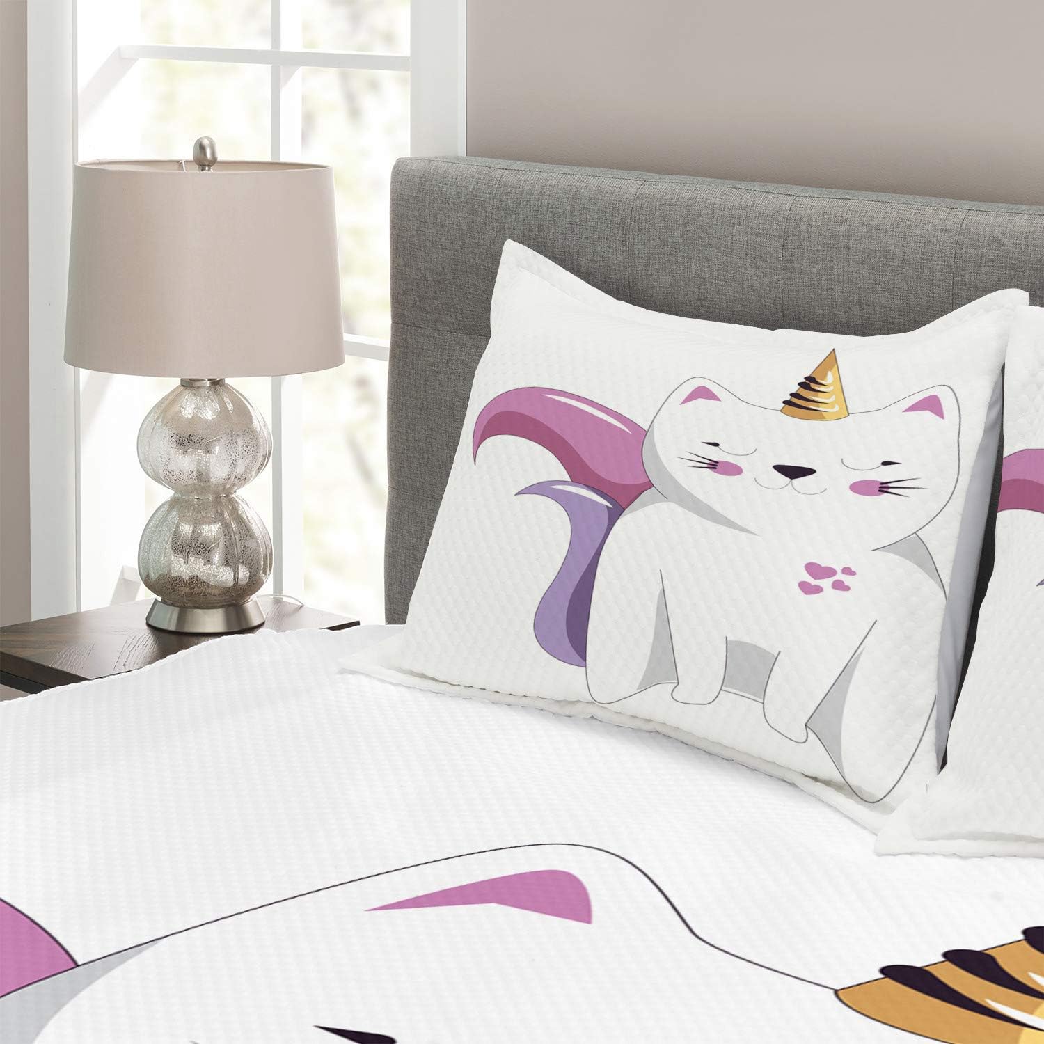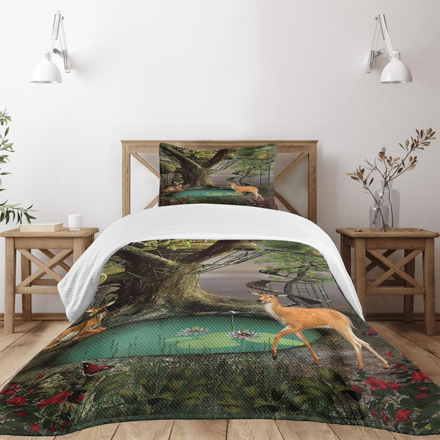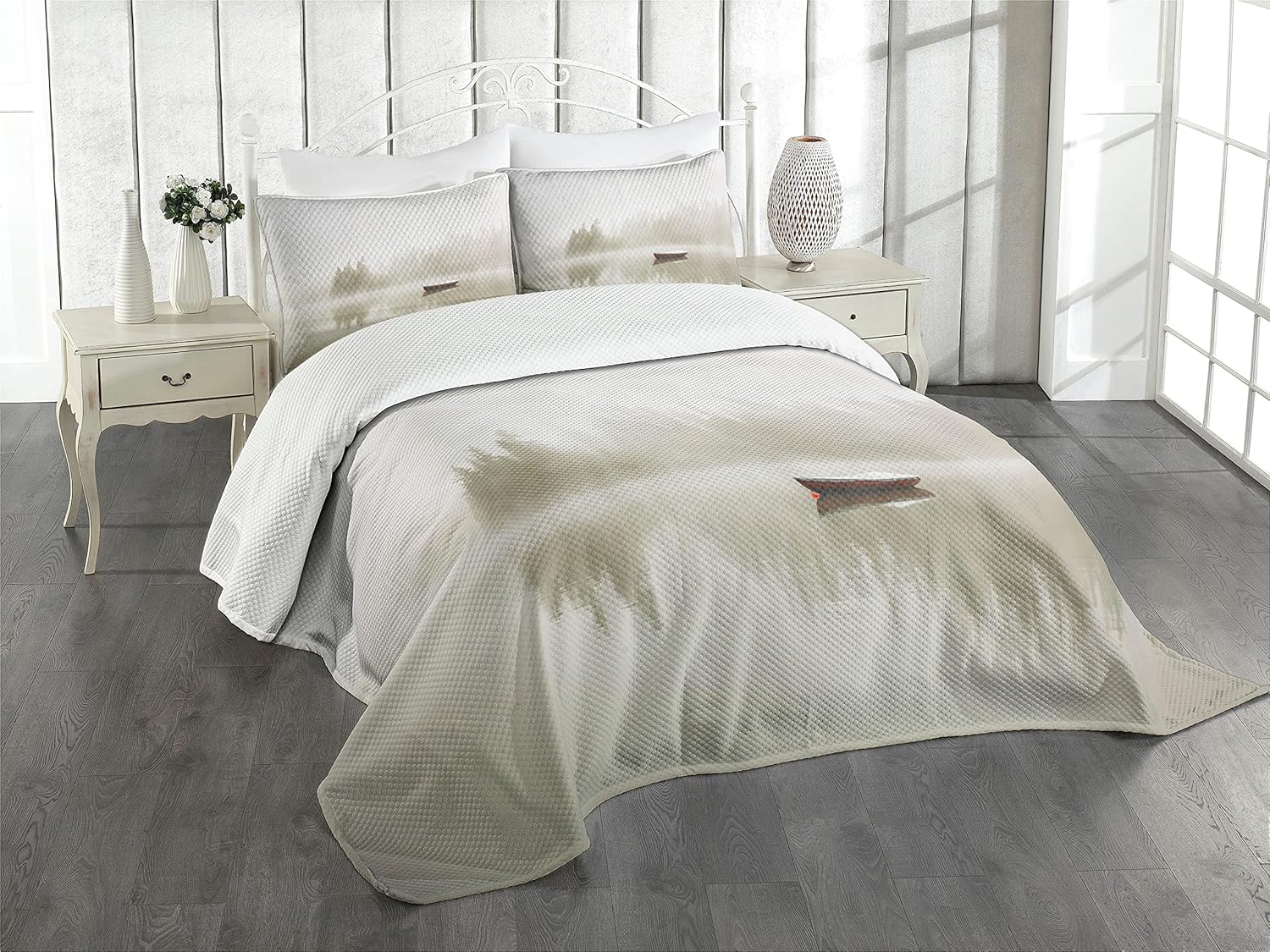 Ambesonne Dragonfly Bedspread, Lotus Flower Field Winged Bug Flying Oriental Blooms Print, Decorative Quilted 3 Piece Coverlet Set with 2 Pillow Shams, Queen Size, Cream Peach