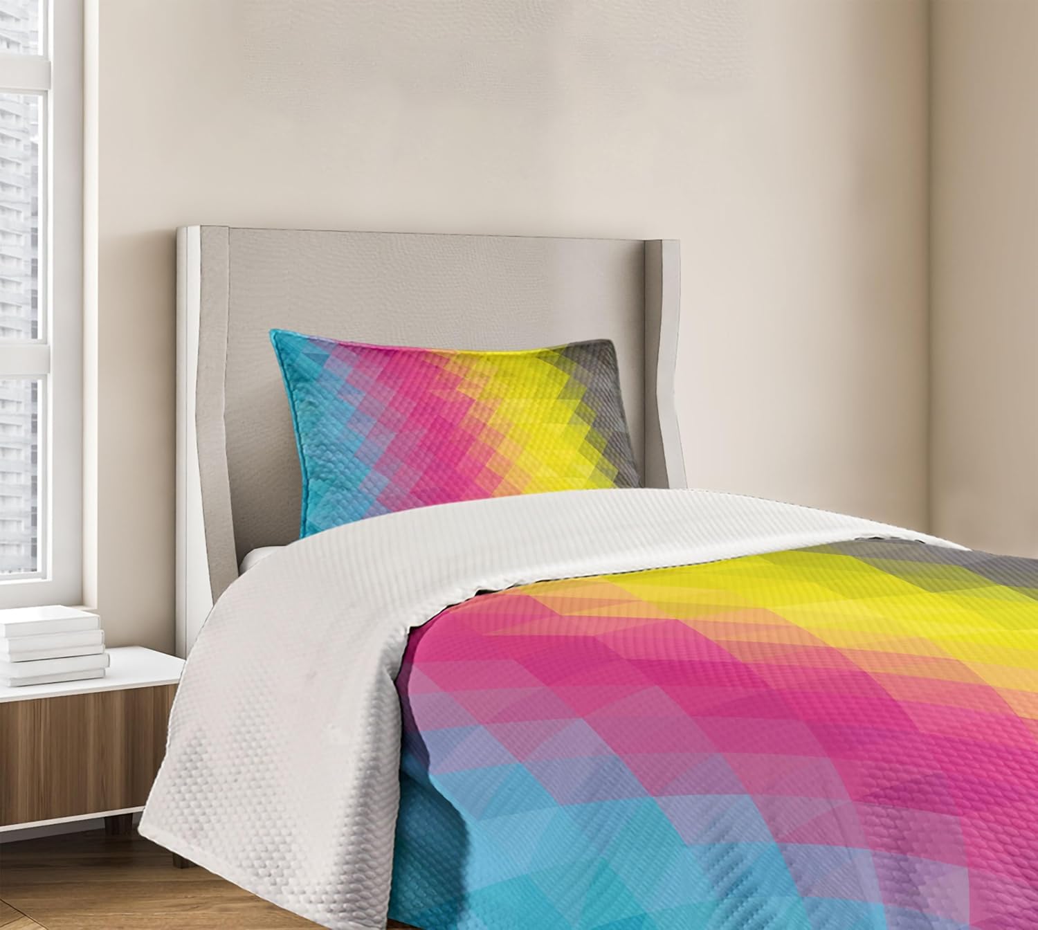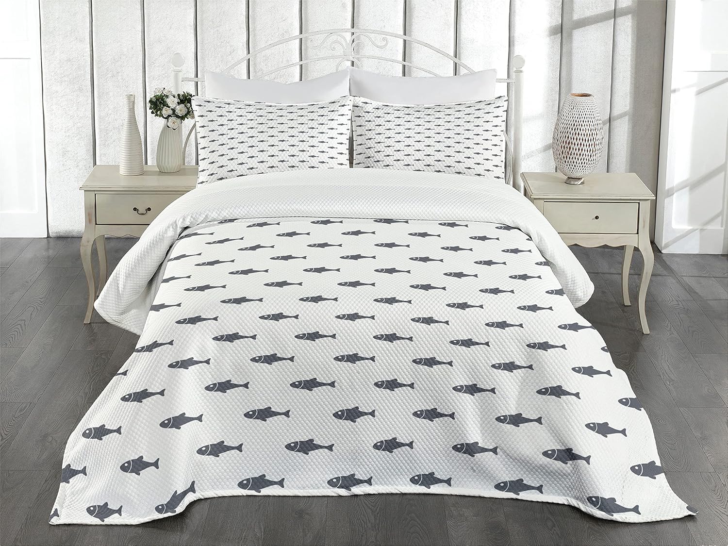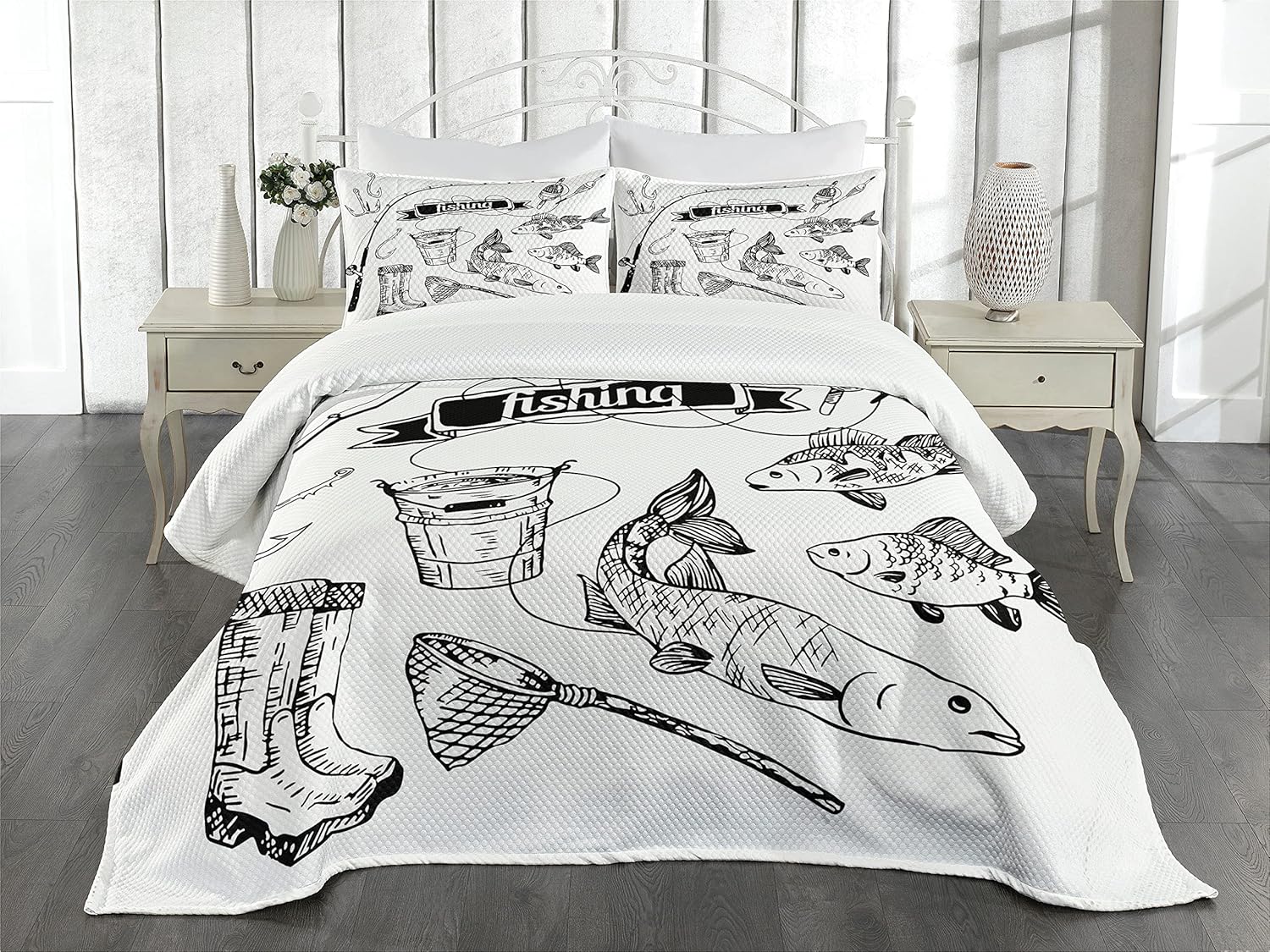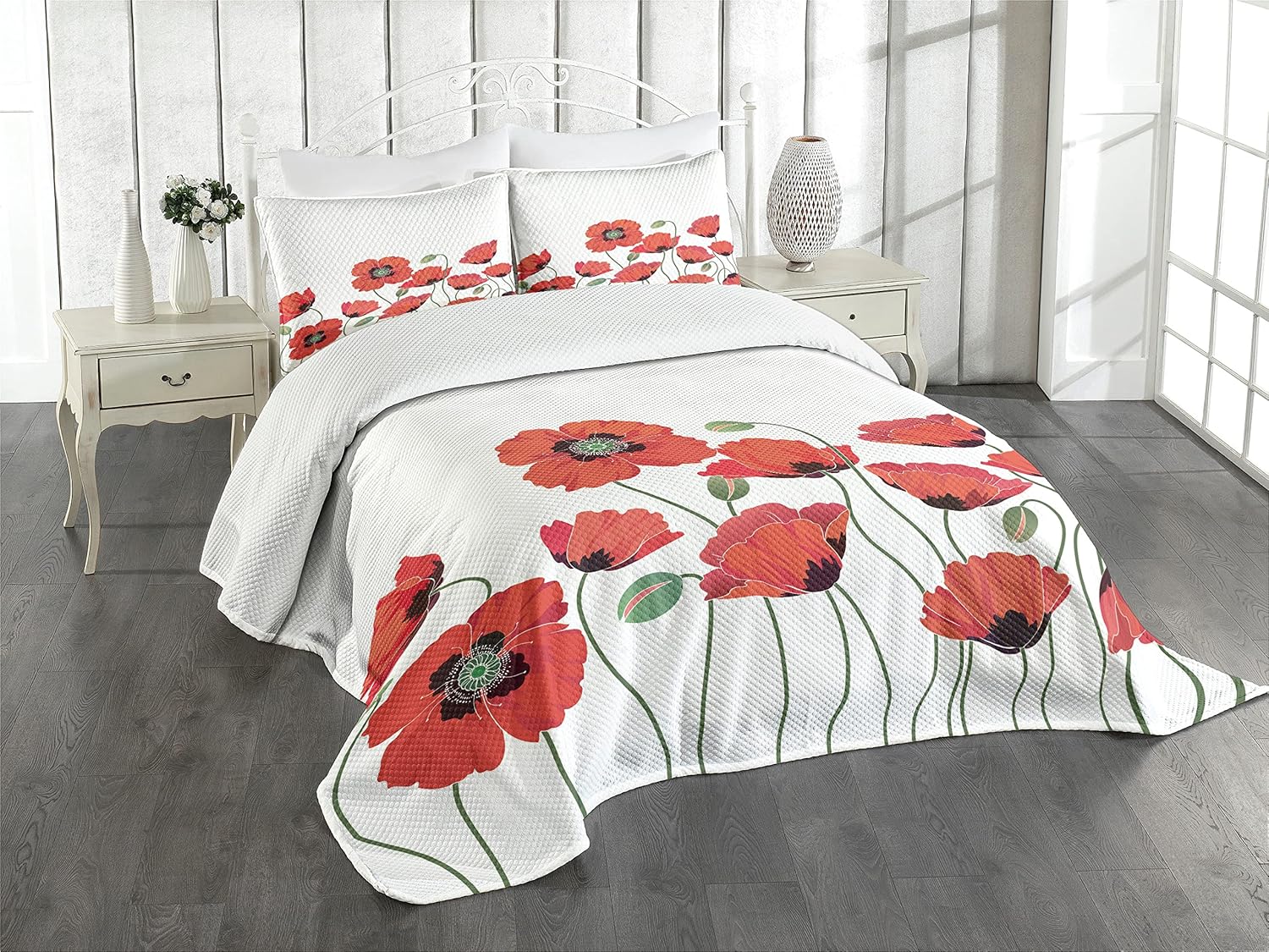 Ambesonne Dragonfly Bedspread, Lotus Flower Field Winged Bug Flying Oriental Blooms Print, Decorative Quilted 3 Piece Coverlet Set with 2 Pillow Shams, Queen Size, Cream Peach
