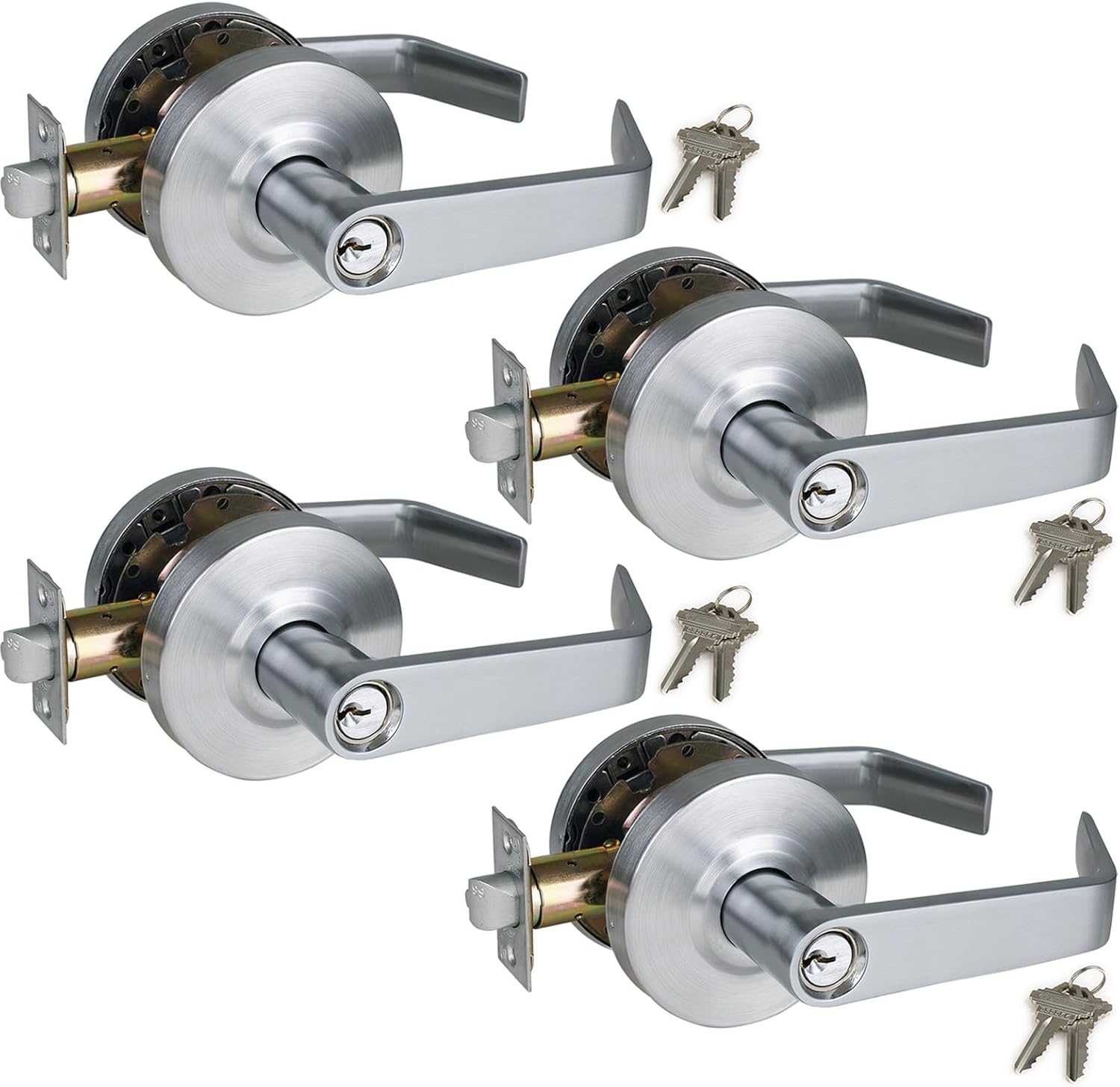 | Included Components | * Installation template and instruction * Pin to detach the handle before installing *Screws for installation * Door Lever Set *Strike Plate *70mm Adjustable Latch *Keys(NOT keyed-alike) |