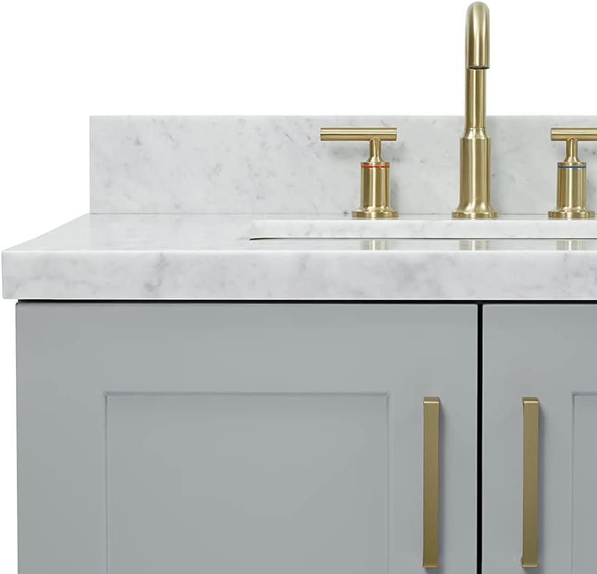| Included Components | Included: fully assembled base cabinet, satin brass hardware, countertop with matching backsplash, sinks |