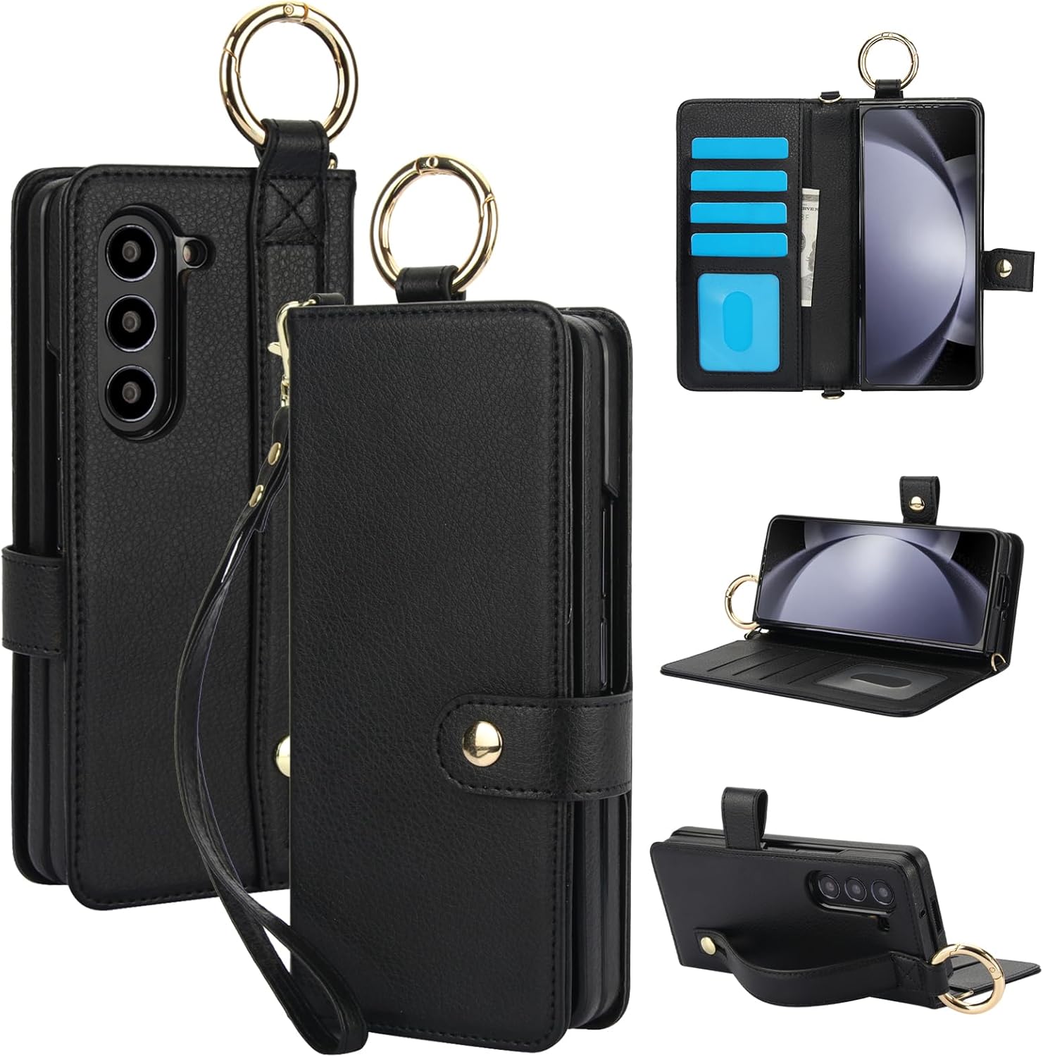 *【Compatible Models】: Compatible with Samsung Galaxy Z Fold 5, NOT compatible with other devices.*【Wallet Design】: 4 card slots + 1 cash slot can hold your some cards and little bit cash and coins without taking wallet outside. It is perfect for travelling, simply going out or usual daily life.*【S-Pen Holder】: The Case with S pen holder can easily solve the s-pen storage problem to protect your cards and S-Pen safely. This phone case is suitable for everyday life and business trips.*【RFID Blocking】: This case is made of high-quality durable PU leather above odor. RFID blocking materials effectively block signals and stop being scanned and theft, protecting your credit cards, debit cards, ID cards or any other RFID-enabled cards.