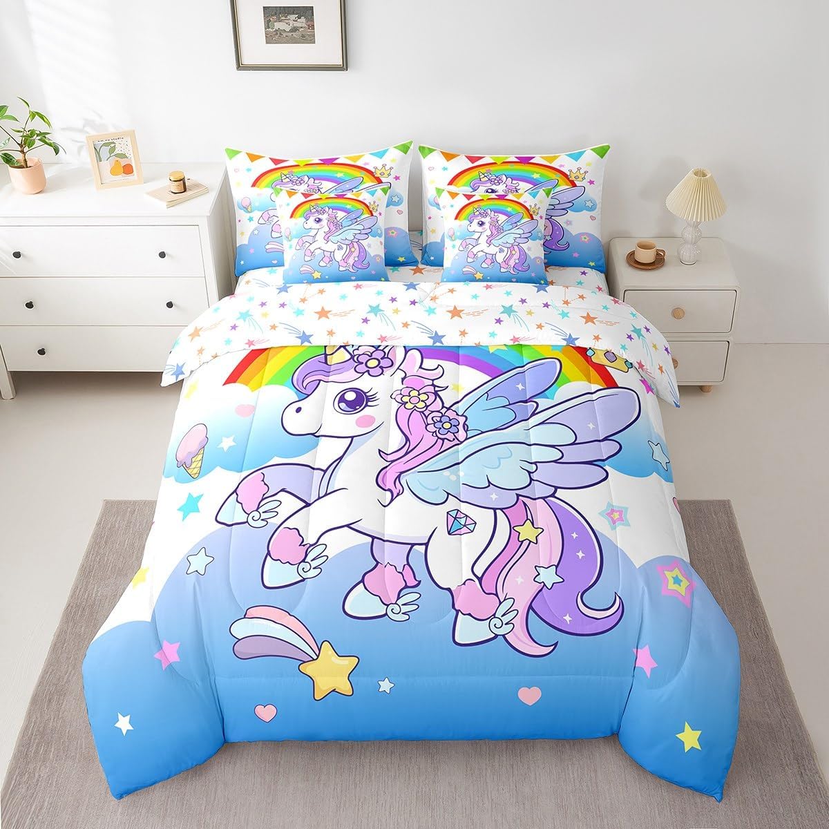 | Included Components | 1 comforter + 2 pillow cases + 1 flat sheet + 1 fitted sheet + 2 throw pillow covers |