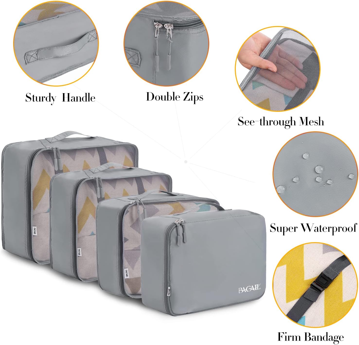 Premium Fabric: Smooth and durable fabric protects clothes from wrinkles and stains; high performance feature makes the packing cubes can bear high density wear and tear during traveling; water-repellent feature protect your clothes from spill or leaks