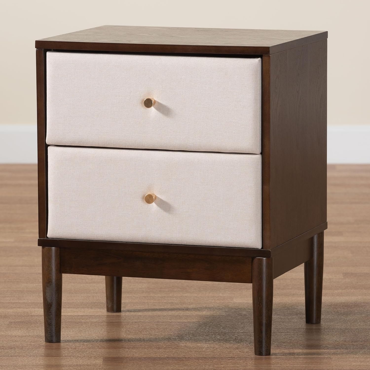 | Model Name | Baxton Studio Nikolai Beige Fabric and Wenge Brown Wood 2-Drawer Nightstand |