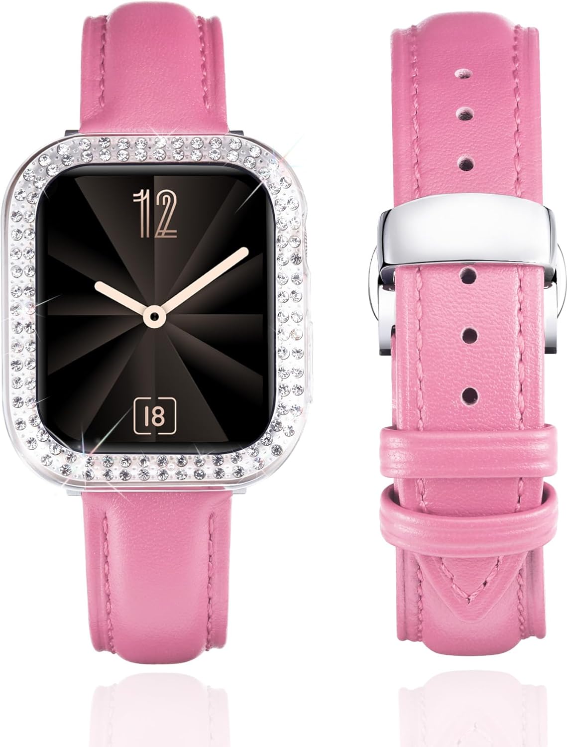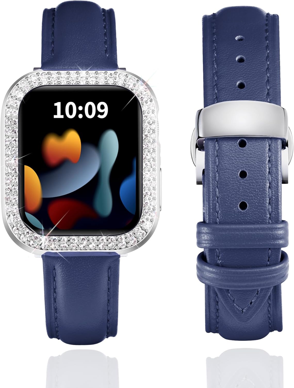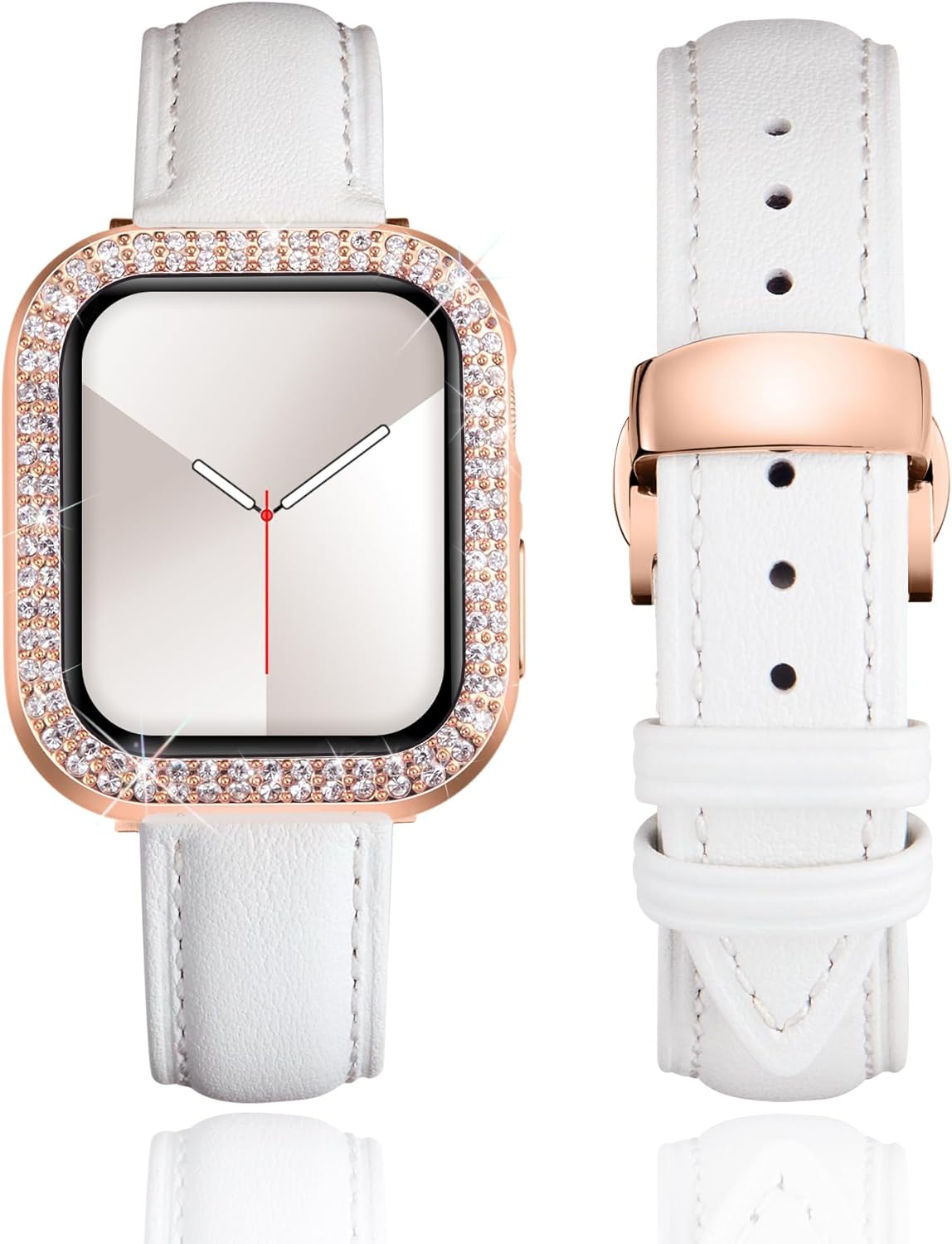 Product DescriptionThis stylish leather watch band would be a nice choice as an exquisite gift for your friends, lover or family on Weddings, Birthdays, Valentines' day, Mothers' day, Christmas, Thanksgiving Day, and anniversaries. After all, no woman can refuse this shiny surprise.Production SpecificationProduct Name: leather watch bandMaterial: premium leatherBand Color: White/Pink/Light Purple/Red/Orange/Rose Red/Black/Brown/Blue/Grey/GreenBuckle Color: Silver/Black/Gold/Rose GoldAvailable Size: 40mm 41mm 44mm 45mm 42mm 46mmCompatible Models: compatible with apple watch band SE SE2 SE3 Series 11 10 9 8 7 6 5 4Features: breathable, soft, stylish