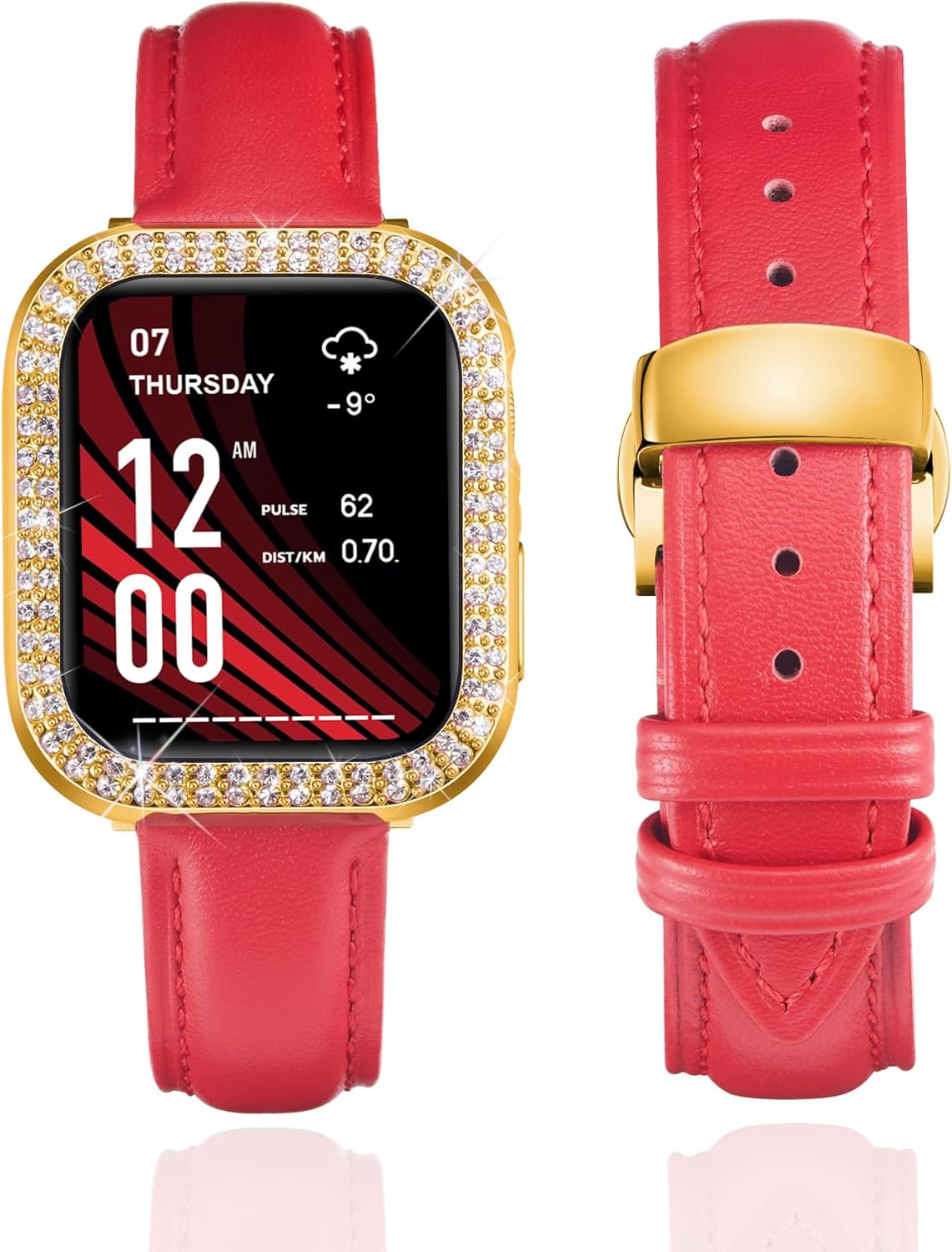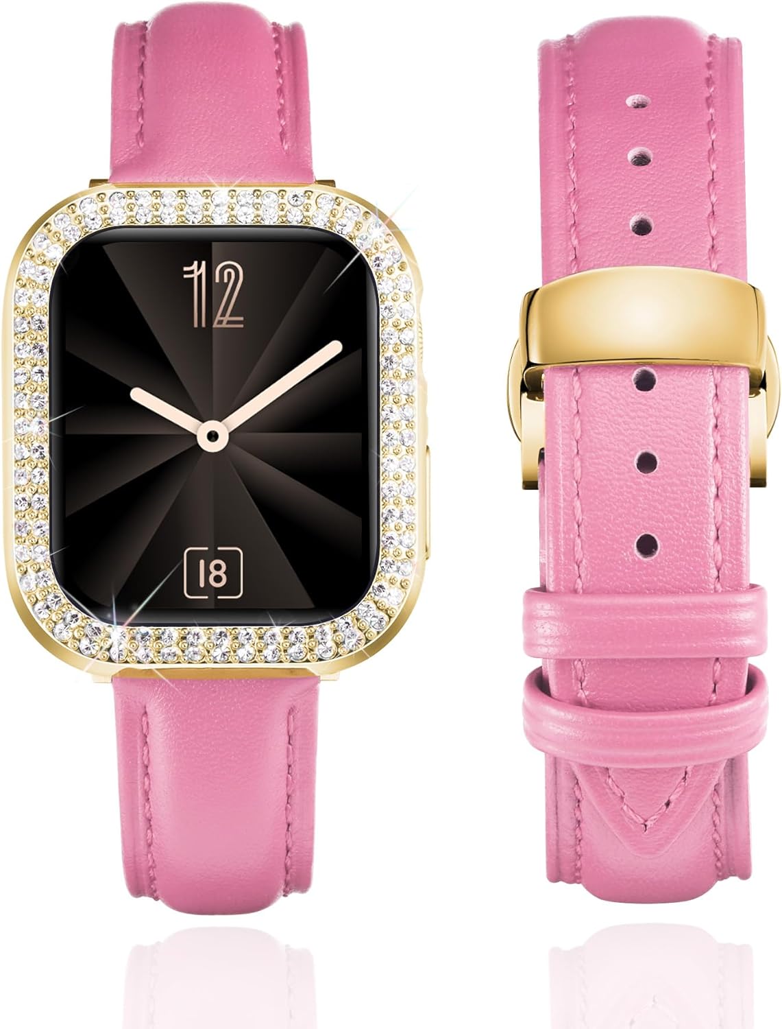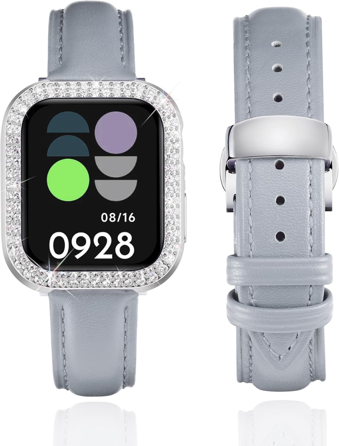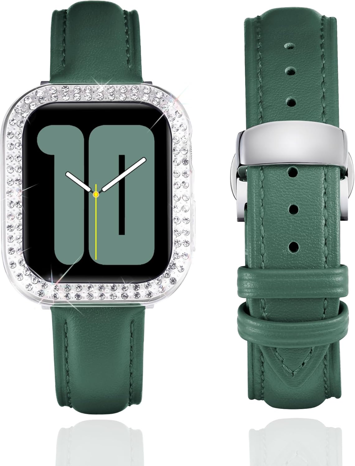 Product DescriptionThis stylish leather watch band would be a nice choice as an exquisite gift for your friends, lover or family on Weddings, Birthdays, Valentines' day, Mothers' day, Christmas, Thanksgiving Day, and anniversaries. After all, no woman can refuse this shiny surprise.Production SpecificationProduct Name: leather watch bandMaterial: premium leatherBand Color: White/Pink/Light Purple/Red/Orange/Rose Red/Black/Brown/Blue/Grey/GreenBuckle Color: Silver/Black/Gold/Rose GoldAvailable Size: 40mm 41mm 44mm 45mm 42mm 46mmCompatible Models: compatible with apple watch band SE SE2 SE3 Series 11 10 9 8 7 6 5 4Features: breathable, soft, stylish