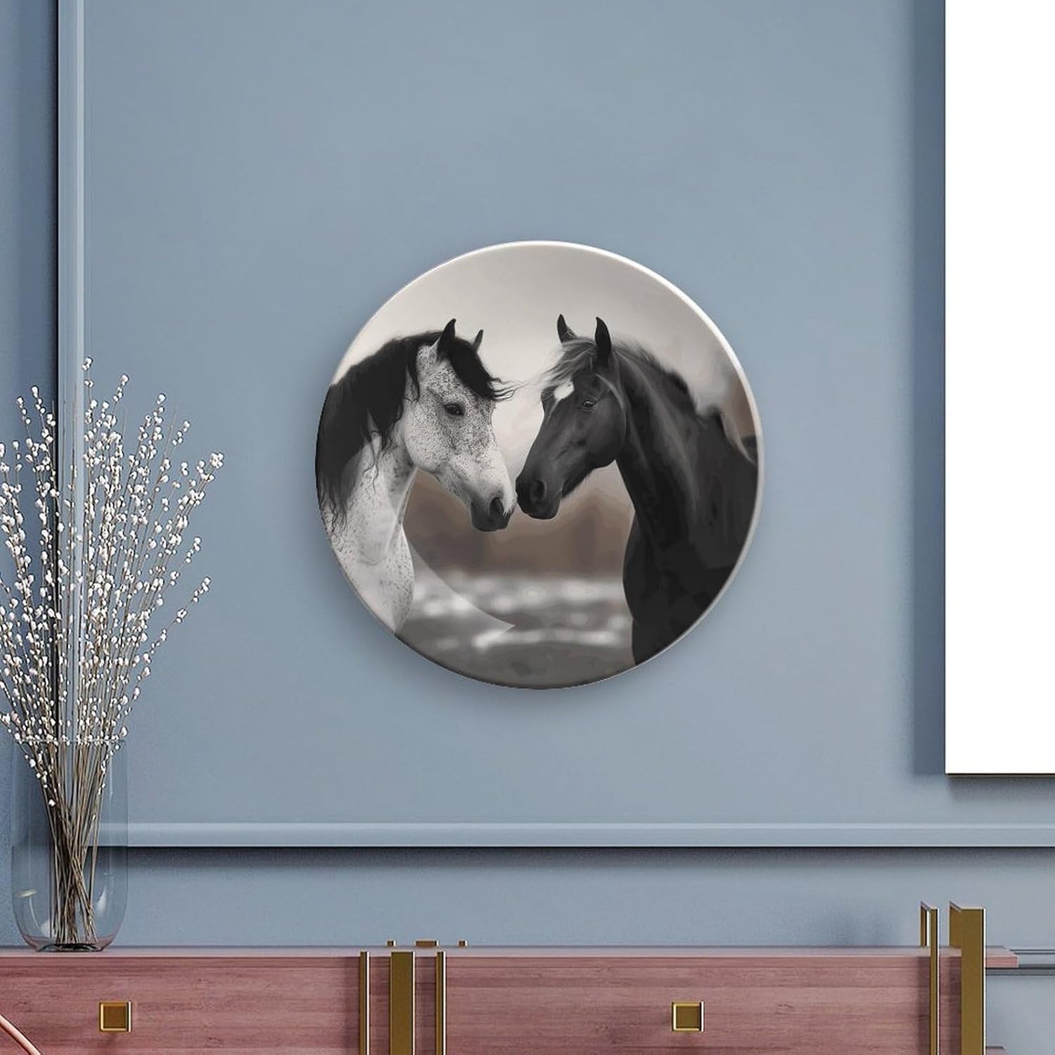 Decorative Plate for Display, Bone China Decorative Plate, Ceramic Dinner Plate with Stand, Vertical Ceramic Plate for Home Office Kitchen Table/Wall Hanging Decor