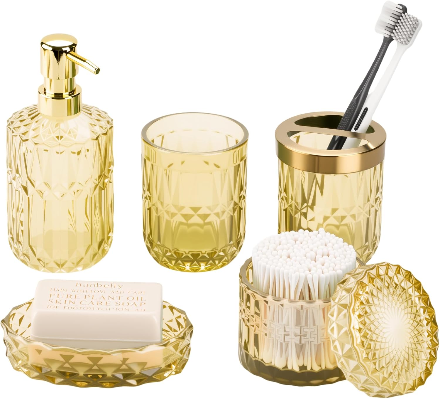 | Included Components | Cotton Swab Jars, Lotion Soap Dispenser, Soap Dish, Toothbrush Holder, Tumbler |