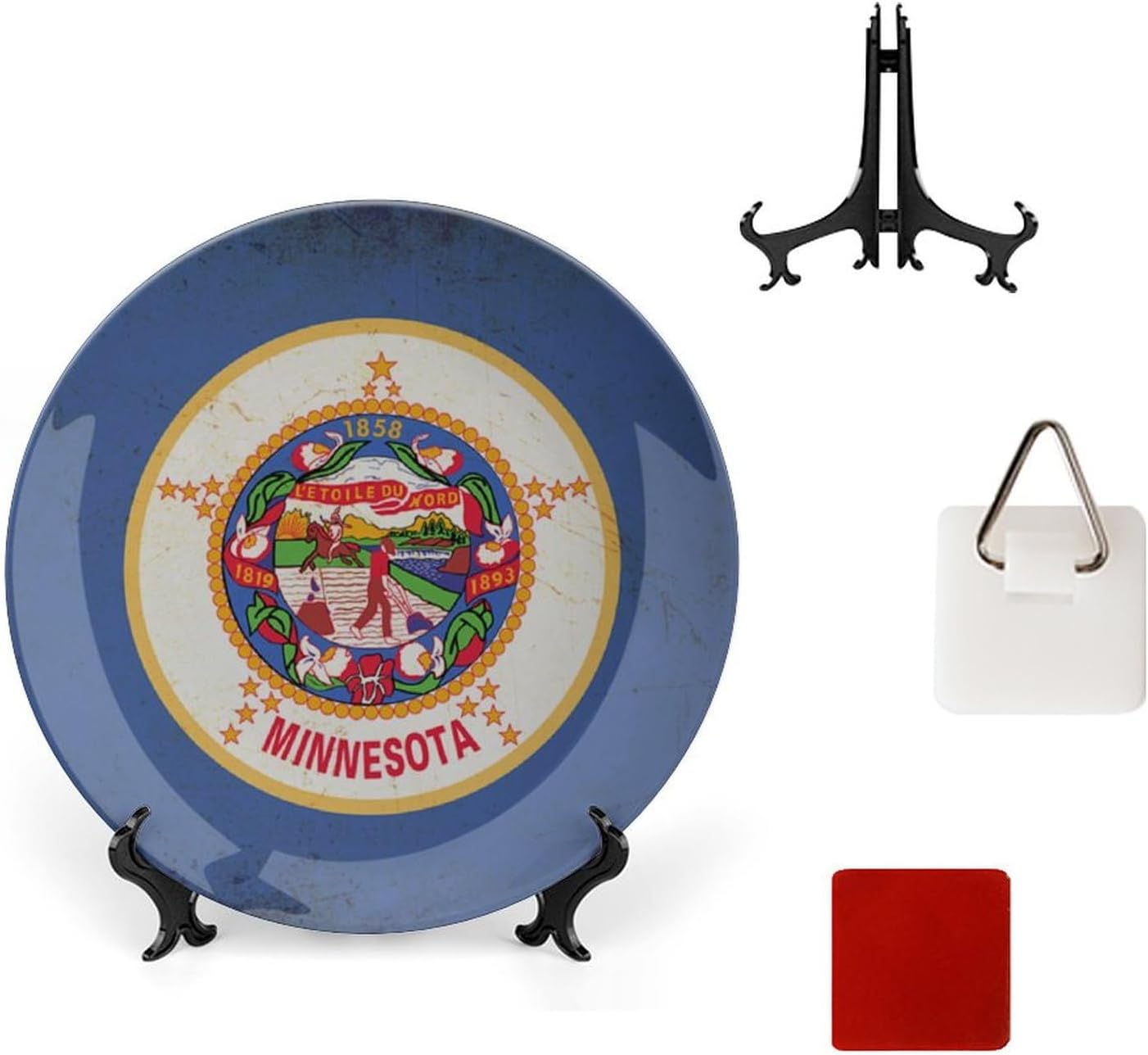 Bone China Decorative Plate, Minnesota State Flag Ceramic Decorative Plate for Home Office Wall Decor, with Vertical Stand Decorative Plates for Home Club