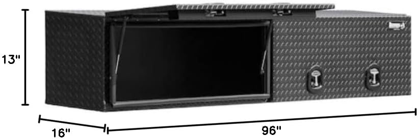 Professional-Grade Storage for Serious Truck Users The Buyers Products Topsider Aluminum Truck Tool Box is engineered for contractors, service techs, and fleet operators who need secure, weather-resistant storage without sacrificing valuable bed space. Constructed from lightweight, corrosion-resistant aluminum with reinforced corners and a robust continuous hinge, this box mounts on your truck’s bed rails and stays tough on the job. Dual Flip-Up Doors with Smooth Gas Shocks Both top doors open upward and stay open with the help of gas shocks, providing easy access even when your hands are full. An integrated rain gutter and automotive bulb seal keep weather and grime outside where they belong. Built to Lock, Ready to Work Die-cast compression-style latches provide a snug, secure seal and theft resistance in any environment. All mounting hardware is included, and a no-drill install option using J-hooks and protective pads helps preserve your truck's finish. Common Uses: Pickup trucks, flatbeds, service bodies, and utility vehicles. Made in the USA and built for professionals who rely on their gear daily.