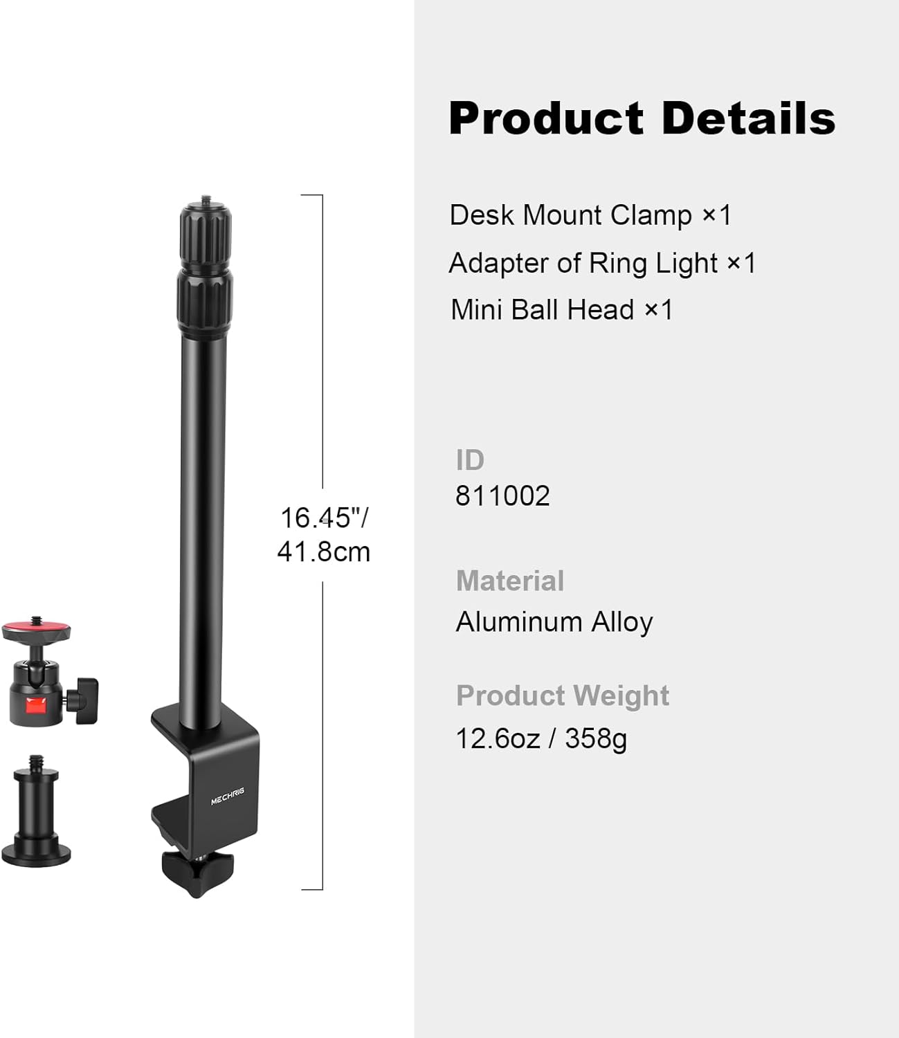 | BuiltIn Media | Table Stand with C Clamp + Ball Head + 1/4" Male to 1/4" Female Screw Adapter |
