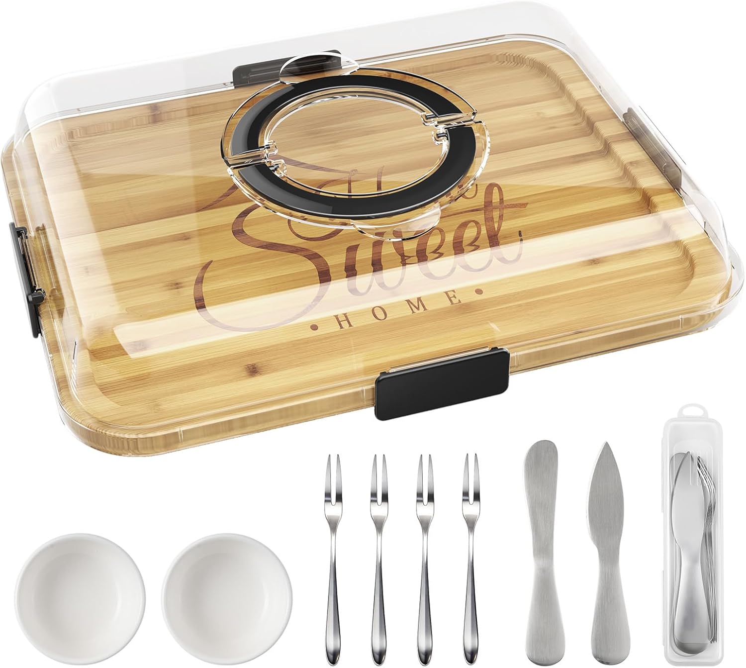| Included Components | 1 × Cheeseboard, 1 × Lid, 2 × Ceramic Bowls, 2 × Knives, 4 × Forks |