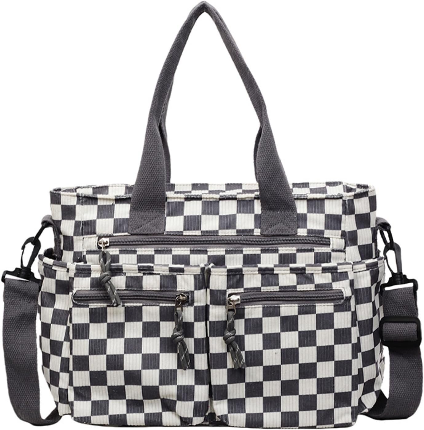Designed for everyday use, this checkered corduroy tote bag features a spacious main compartment and multiple zippered pockets for easy organization. Durable corduroy fabric, secure zipper closure, and versatile carrying options make it ideal for daily errands, work, and casual outings. Product Specifications Material: Corduroy Dimensions: 14.2” (L) x 10.2” (H) x 5.9” (W) Closure Type: Zipper Pattern: Checkered Available Colors:Black,Grey,Green,Brown,Khaki Strap: Detachable & Adjustable Shoulder Strap Carry Style: Handbag / Shoulder Bag / Crossbody Use: Everyday, Work, Travel, Casual Outings Package include: 1 x Checkered Shoulder Bag