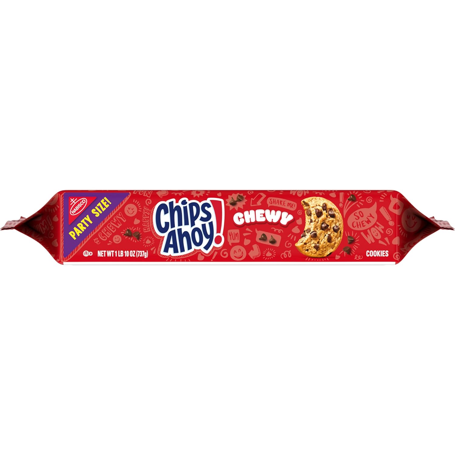 CHIPS AHOY! Chewy Chocolate Chip Cookies are the CHIPS AHOY! classic cookies you know and love, but baked to be perfectly soft and chewy. These soft cookies are baked to perfection for maximum chewy goodness. Enjoy the comforting taste of these bite size cookies that are sure to become a household favorite treat. Make lunches at school or work more exciting by including CHIPS AHOY! chocolate chip cookies, or serve these chewy cookies as birthday cookies at your next party. Regardless of the occasion, these cookies make a simply delicious treat or dessert when a sweet craving strikes. The lift tab makes this party size package of soft baked cookies easy to open and close for convenient storage. Bulk cookie pack ensure you have CHIPS AHOY! chewy cookies on hand for any occasion.