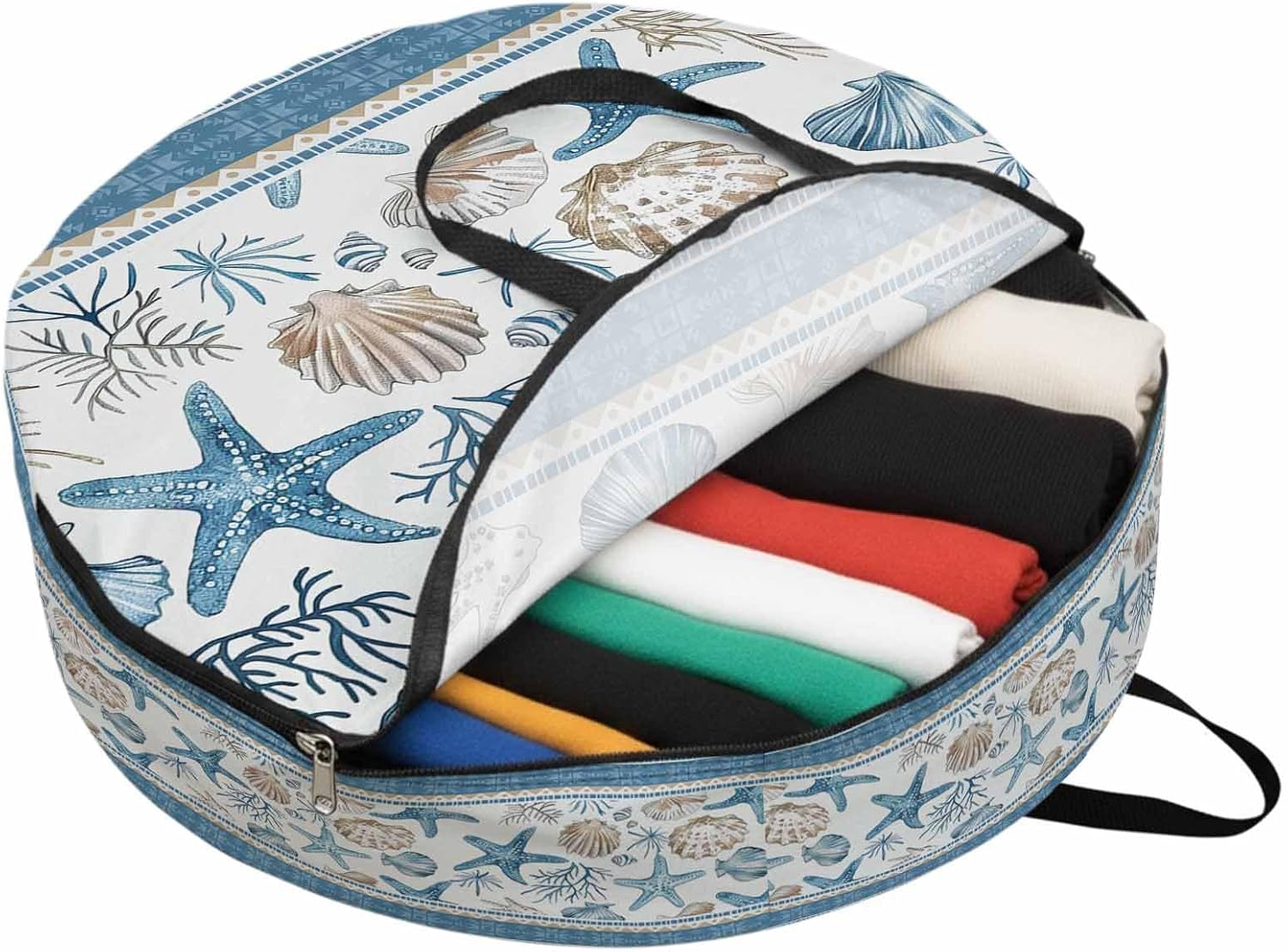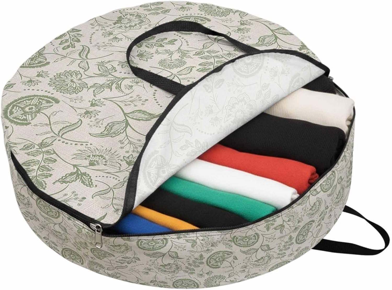 Reclaim Your Closet Space with the Round Storage Solution! Material: polyester Diameters: 24 inch, 30 inch, 36 inch Depth: 7 inches Package Includes: Round Storage Bag One Bag, Endless Possibilities: Whether you are swapping out your summer wardrobe, moving into a new dorm, or packing away holiday decorations, this bag has you covered. The circular design is uniquely suited for: Bedding: Comforters, quilts, sheet sets, and oversized pillows. Clothing: Winter coats, sweaters, and bulky ski gear. Home Decor: Holiday wreaths, garlands, and floral arrangements. Outdoor Gear: Camping blankets, sleeping bags, and beach towels. Dual Zippers: The high quality double zipper design allows the closet organizer to open wide from both sides, making it effortless to load and unload even the bulkiest comforters or wreaths. Reinforced Handles: Sturdy, reinforced handles are securely stitched to provide extra strength and a comfortable grip when carrying heavy loads or pulling the bag from under a bed. Clear Label Pocket: A transparent built-in label holder allows you to quickly identify the contents of each bag without ever having to unzip it, keeping your storage perfectly organized.