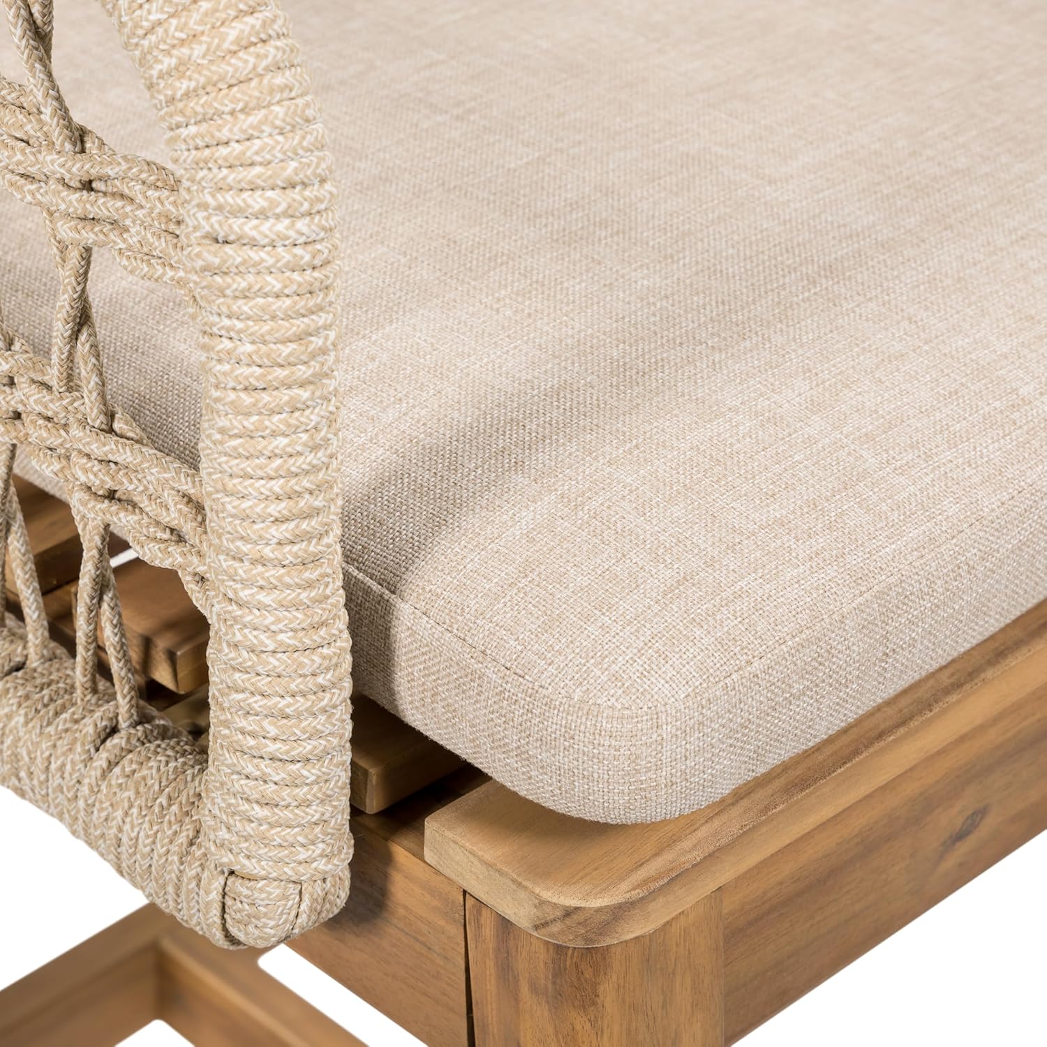 Enhance your indoor or outdoor bar area with this set of 2 acacia wood patio barstools. Featuring a durable acacia wood frame, hand-woven rope backrest, and soft light-colored cushions, these stools combine natural beauty with modern design. Their weather-resistant materials and ergonomic comfort make them a stylish and lasting addition to any space.