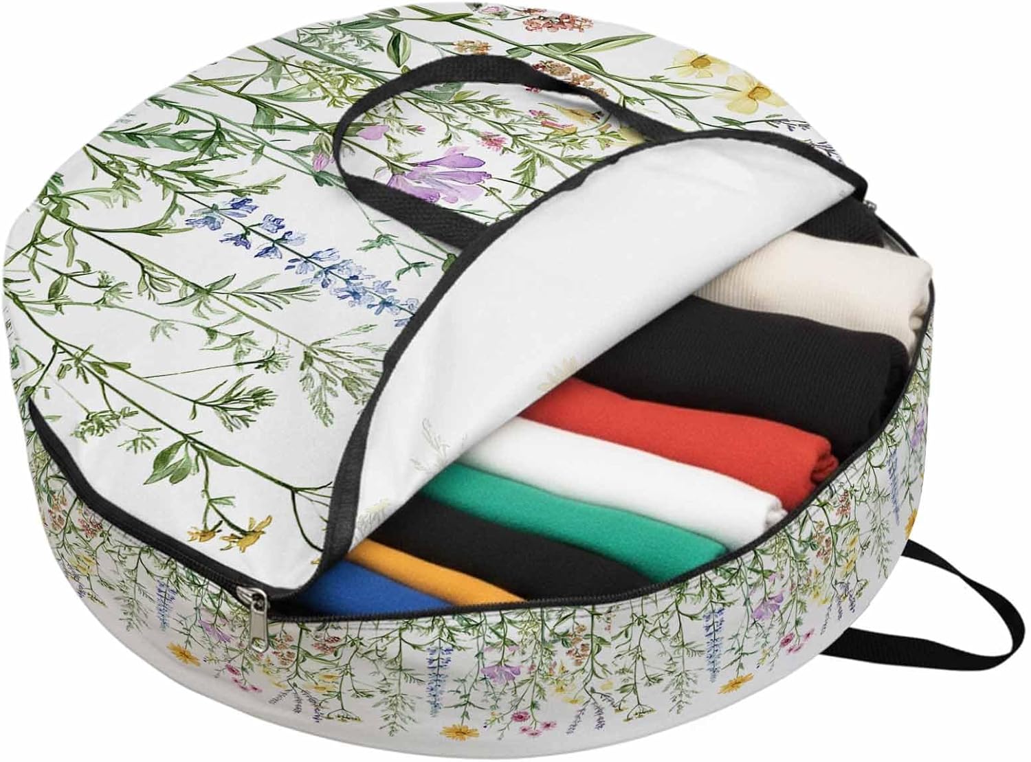 Reclaim Your Closet Space with the Round Storage Solution! Material: polyester Diameters: 24 inch, 30 inch, 36 inch Depth: 7 inches Package Includes: Round Storage Bag One Bag, Endless Possibilities: Whether you are swapping out your summer wardrobe, moving into a new dorm, or packing away holiday decorations, this bag has you covered. The circular design is uniquely suited for: Bedding: Comforters, quilts, sheet sets, and oversized pillows. Clothing: Winter coats, sweaters, and bulky ski gear. Home Decor: Holiday wreaths, garlands, and floral arrangements. Outdoor Gear: Camping blankets, sleeping bags, and beach towels. Dual Zippers: The high quality double zipper design allows the closet organizer to open wide from both sides, making it effortless to load and unload even the bulkiest comforters or wreaths. Reinforced Handles: Sturdy, reinforced handles are securely stitched to provide extra strength and a comfortable grip when carrying heavy loads or pulling the bag from under a bed. Clear Label Pocket: A transparent built-in label holder allows you to quickly identify the contents of each bag without ever having to unzip it, keeping your storage perfectly organized.