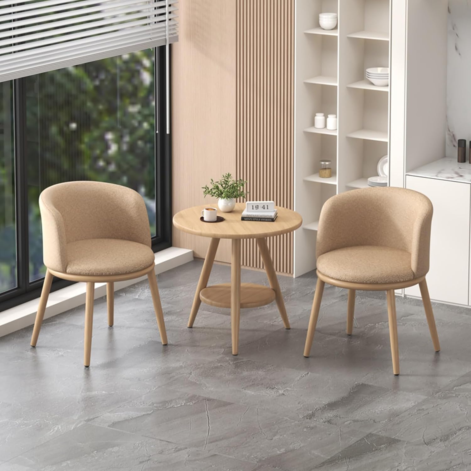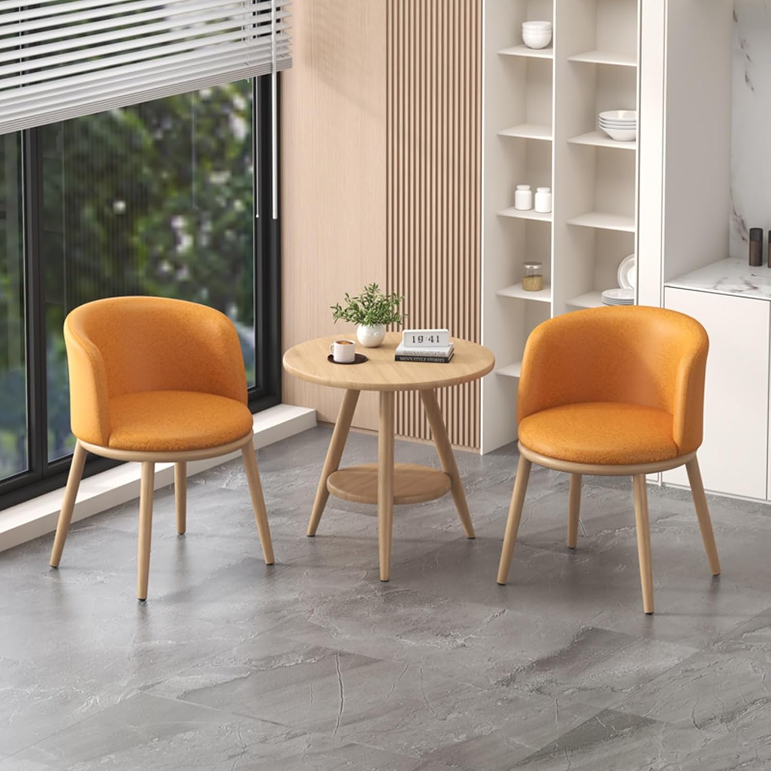 Coffee reception table and chair set, balcony table and chair combination, office reception round table with space-saving chairs, business reception room table set, coffee table set. Waterproof and heat-resistant rock slab tabletop. Safety non-slip mat to protect your floor. Available in multiple colors. Simple, modern style with metal bracket construction. Round or square table shape options. Suitable for 2/4 people. Assembly required. Experience the perfect blend of functionality and style in our table and chair set. Upgrade your space today with this space-saving, simple, and elegant set! Please note: Measurements are based on manual measurement and may vary by 1-2 cm (0.4-0.8 in). Please verify product dimensions before purchasing for a seamless shopping experience. Product images may not include decorative elements.