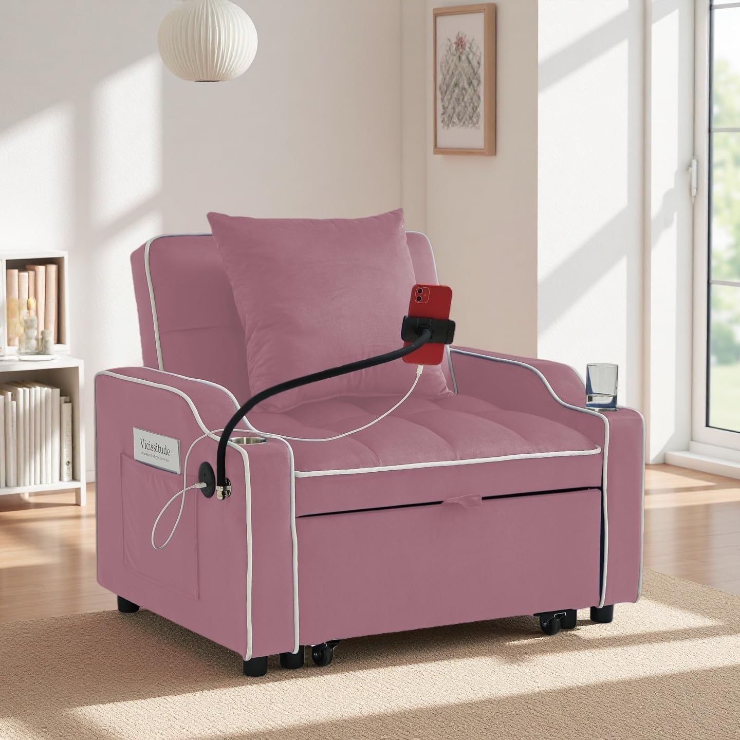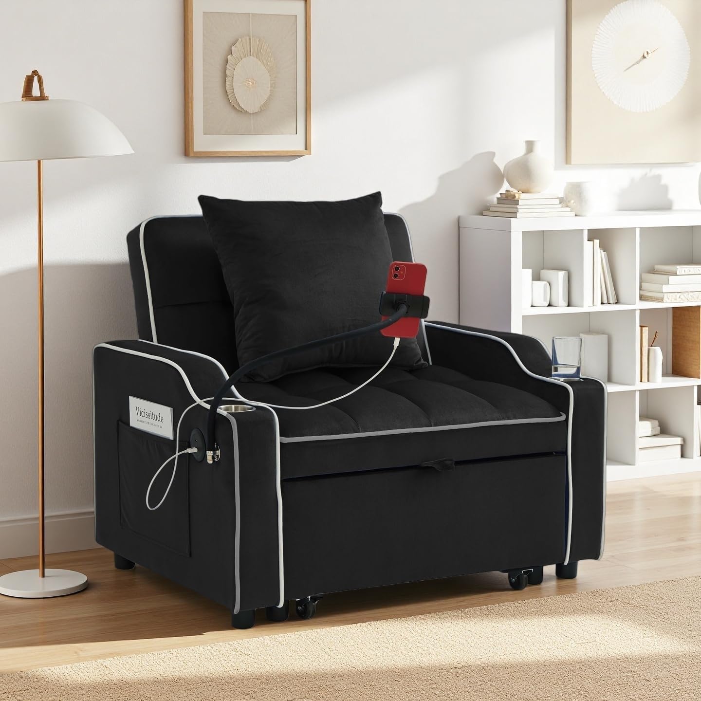 | Additional Features | Pull-out Bed, Adjustable Backrest, USB Charging Ports, Phone Stand, Built-in Cup Holder, Side Pockets |