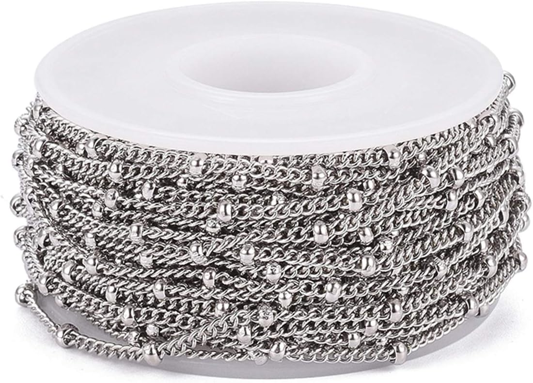 Twisted Curb Oval Link Cable Cross Chain With Rondelle BeadsLength: 10 meters/ 10.9 yardsDimension: about 1.8x1.4mm cross link, 4x3.5mm rondelle beads, 0.4~1mm thick.Long-Lasting Plated: After electroplating, the chain is processed by oil sealing process to keep the color for a long time. Metal appearance will absolutely stimulate your eyes.These sturdy chains can be matched with jump rings and clasps, as well as acrylic beads, glass beads, gemstone beads to be popular necklaces, bracelets and belts.In addition to necklace, they are also great for decorating jeans, sweater, handbag, wallet, clothing accessories.Closed metal chains are hard and durable that they can not be easy to crush. They are useful. You can DIY at will with your own ideas.