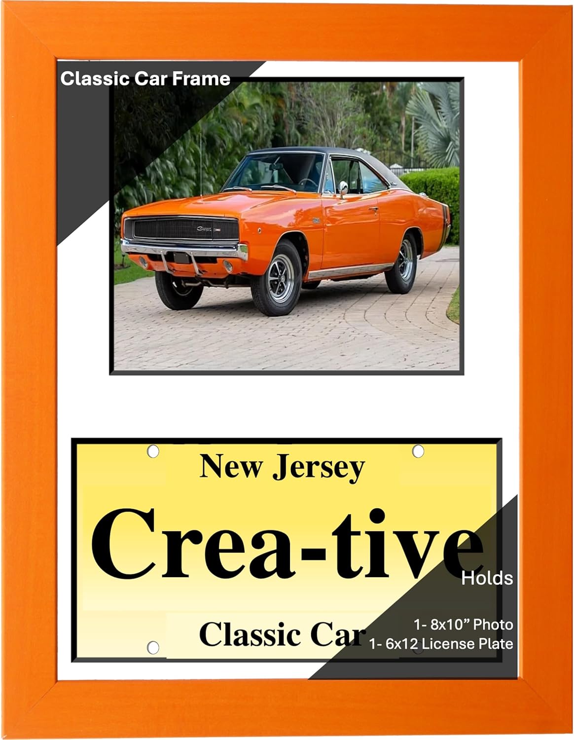 Frame an 8" x 10" picture of your first car with its 6" x 12" licence plate on the wall with our hastle free black frame designed specifically for picture and plates (no tape, glue or fastners needed).