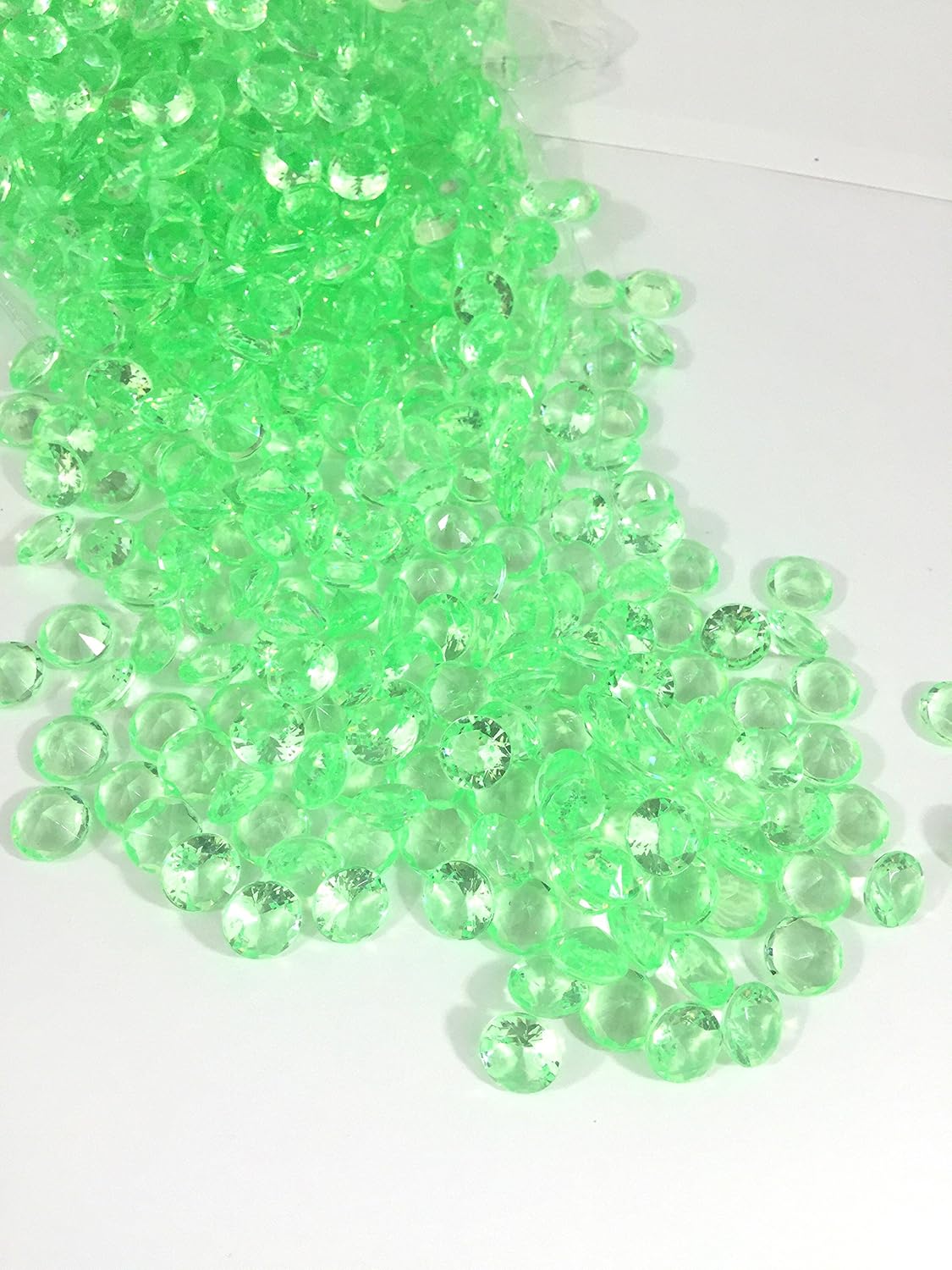 High quality decorative acrylic diamond. Looks great at any event and make perfect table scatter, clear or colored. Color appear different under different light settings. These sparkling decorations are perfect for weddings, bridal showers, birthdays or anniversary parties. Just scatter these unique gems on guest tables, add to a vase, or centerpiece, or place anywhere you want to add a bit of dazzle. They are ideal for aquarium or fish tank too. Approximately 1000 pieces per pound ( Diameter 120 mm ).
