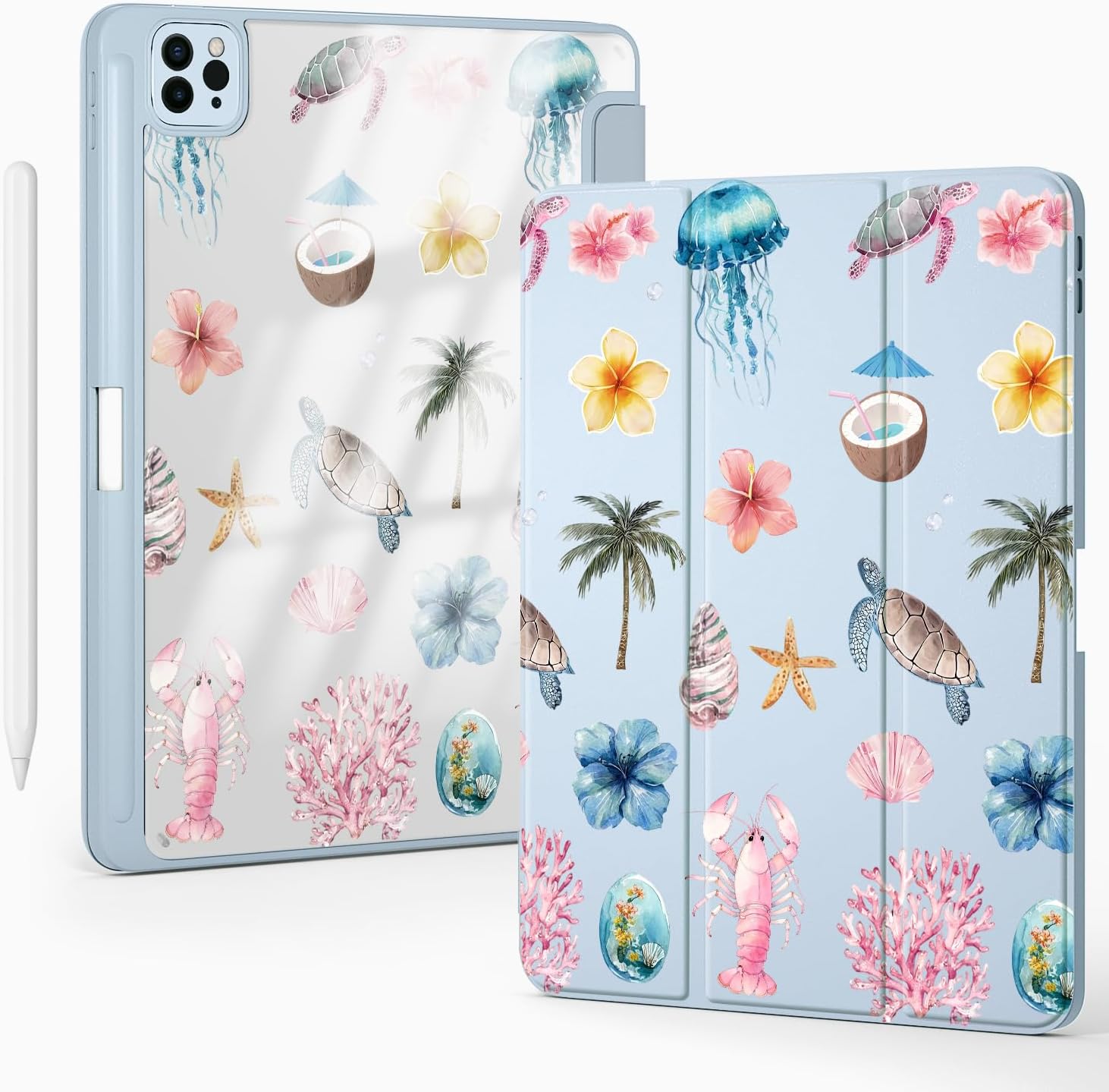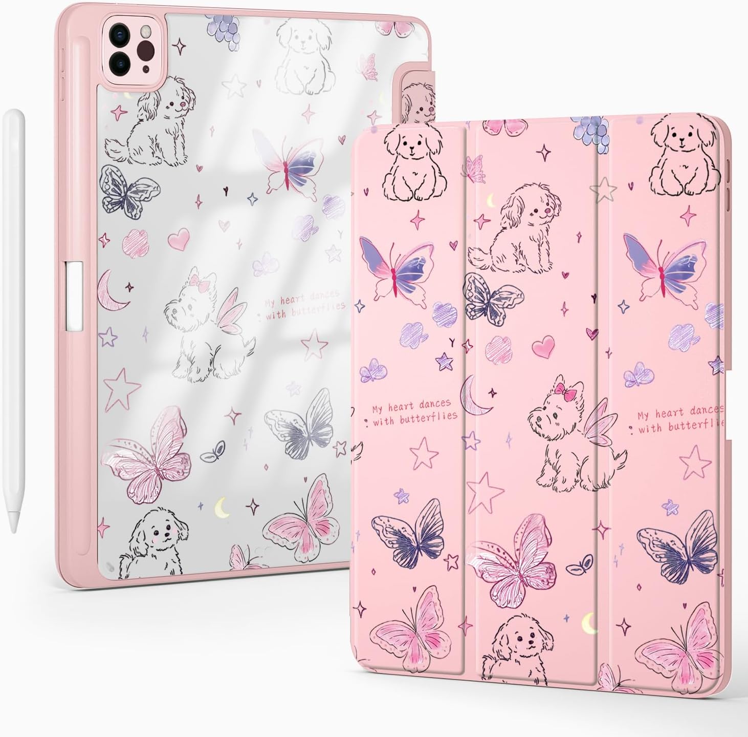 Note: Due to different monitors, there may be a little error in the color.Why choose this cute iPad case?-This is a leather iPad cover case with Apple Pencil holder, support auto sleep/wake. -This protective case has a built-in Apple Pencil holder, grabbing your Apple Pencil effortlessly whenever you want,convenient for your study and work.-This cover can easily change the angle. The 65 °∠video mode can act as a screen stand, and the 30 °∠input mode acts as a keyboard stand, which can meet your viewing and typing needs.Transparent back shell support DIY, you can put photo or sticker you like in the back.-This iPad case design with exquisite exclusive design patterns to ensure that the iPad shell you choose is unique.-We have professional high-tech printing equipment and technology to ensure that the printed patterns are clear and beautiful, and are not easy to fall off.-This is also suitable as a present for family or friend. It is a very creative and practical present for women girls.