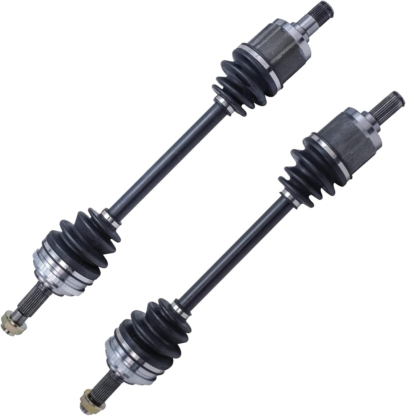 Kit Includes:1x Front CV Axle Shaft Assembly - Passenger Side - 113A_AX1x Front CV Axle Shaft Assembly - Driver Side - 150_AXDriver Side Axle Specifications:Overall Length: 24 1/2"Inner Spline: 34Outer Spline: 33Inner Shape: MaleABS on Axle: NoPassenger Side Axle Specifications:Overall Length: 21 7/8"Inner Spline: 34Outer Spline: 33Inner Shape: FemaleFitment:Replacement for 2005-2009 Buick Allure (3.6L or 3.8L)Replacement for 2000-2005 Buick CenturyReplacement for 2005-2009 Buick LaCrosse (3.6L or 3.8L)Replacement for 1998-2004 Buick Regal (W/O SUPERCHARGER)Replacement for 2000-2003 Chevrolet ImpalaReplacement for 2004-2009 Chevrolet Impala (EXC. SS)Replacement for 2010-2011 Chevrolet ImpalaReplacement for 2004-2007 Chevrolet Monte Carlo (EXC. SS)Replacement for 2000-2003 Chevrolet Monte CarloReplacement for 1999-2001 Chevrolet VentureReplacement for 2002-2005 Chevrolet Venture (FWD)Replacement for 1999-2001 Oldsmobile SilhouetteReplacement for 2002-2004 Oldsmobile Silhouette (FWD)Replacement for 1998-2002 Oldsmobile IntrigueReplacement for 2000-2003 Pontiac Grand Prix (3.8L, 3.1L; W/O SUPERCHARGER)Replacement for 2004-2008 Pontiac Grand Prix (3.8L; W/O SUPERCHARGER)Replacement for 1999-2001 Pontiac MontanaReplacement for 2002-2005 Pontiac Montana (FWD; EXC. SV6)