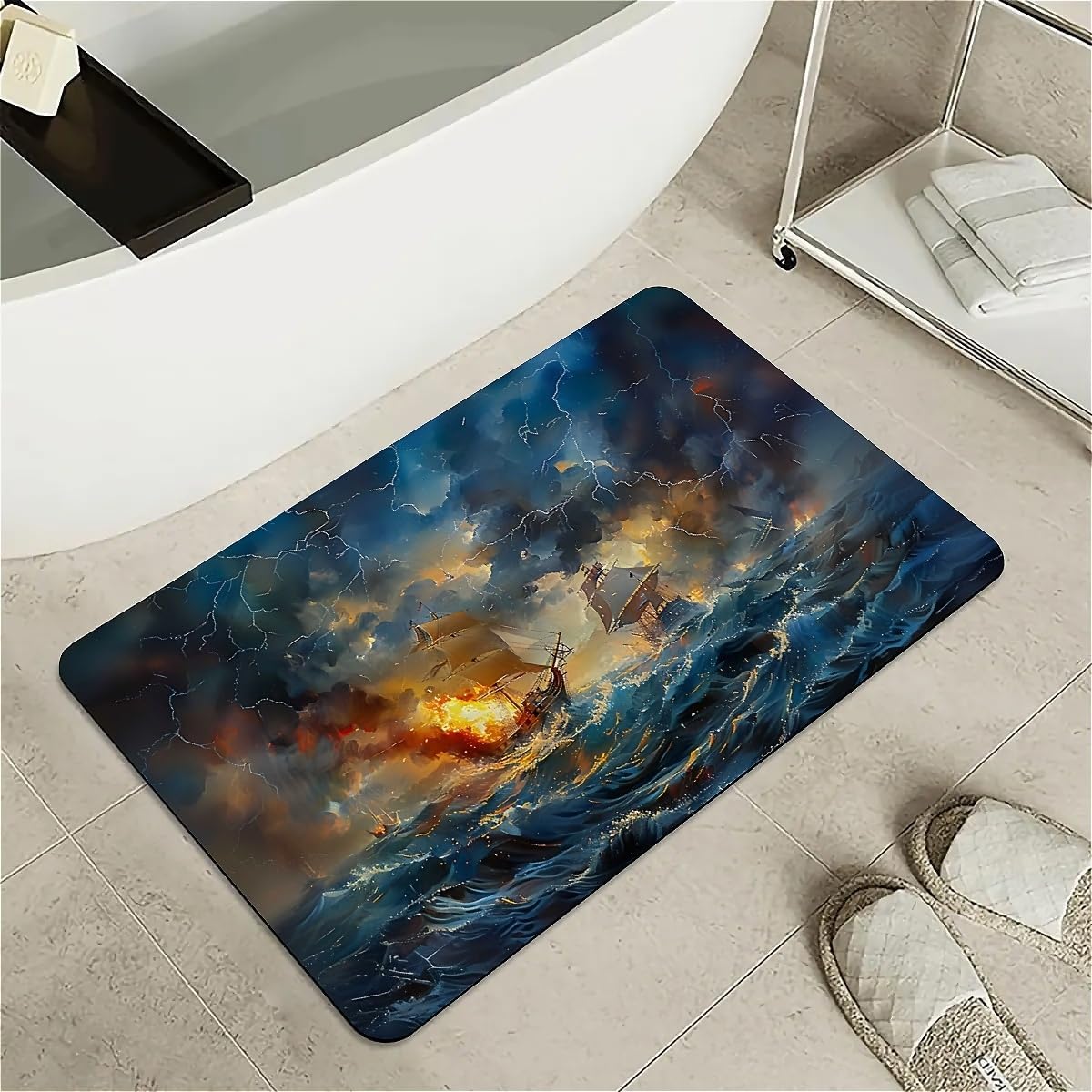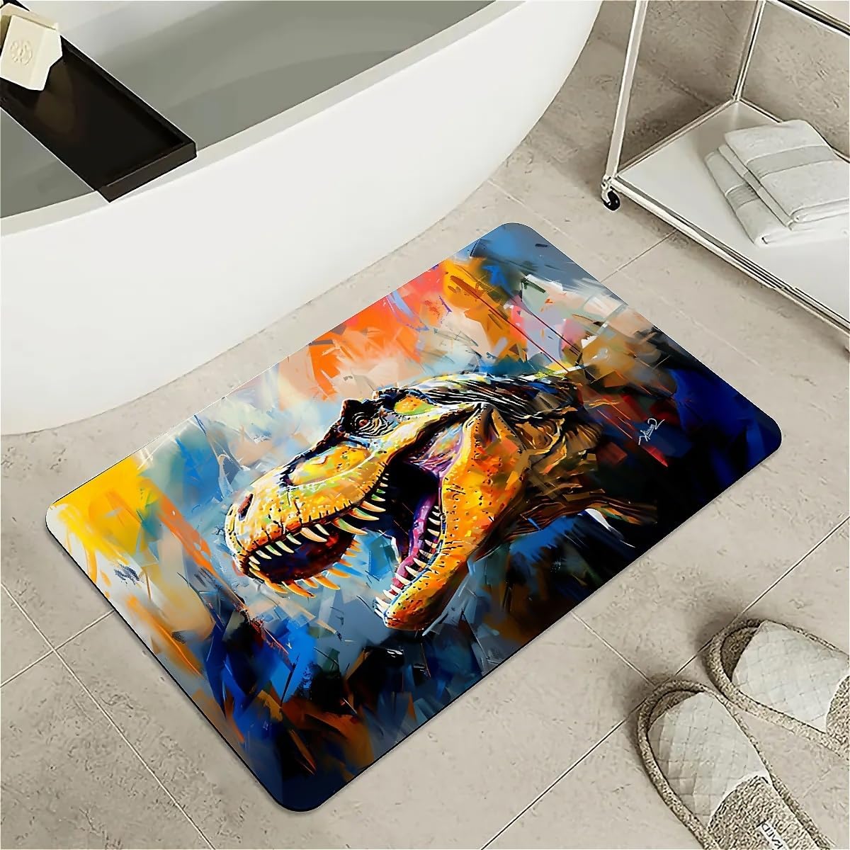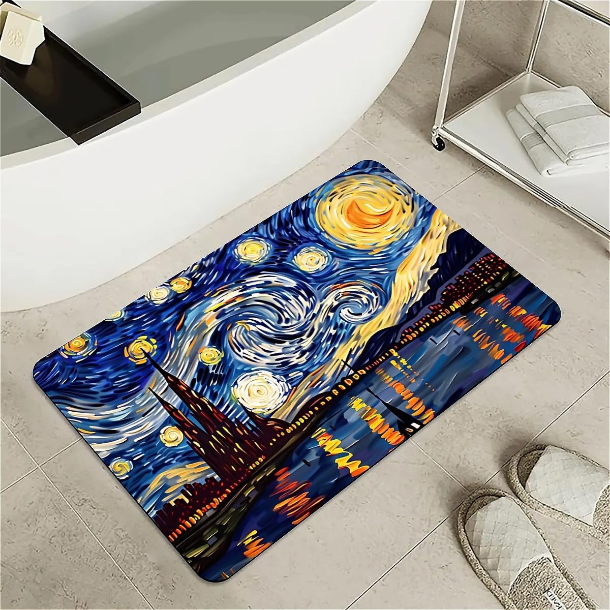 Features: [Beautiful pattern Design] Delicate pattern on a soft diatomaceous earth non-slip bath mat provides an artistical and relaxed feel to the bathroom.[Innovative Design]With the material of nano-level fiber, diatom mud latex mixture foam, as well as silicone rubber anti-skid foam, makes the rugs have upgraded absorption capacity. Meanwhile, it is no smell and no harm to health.this material is easy to clean and lasts for years.[Rubber Backing Technology] Super Water Absorbency Rug Mat Is Backed With Very Effective & Durable Rubber In Order To Prevent Skidding. The Rubber Backing Is Also Very Durable & Will Not Fall Off In The Washer Or Dryer. Prior To Placing The Rug On The Floor, Please Ensure The Floor Underneath The Rug Is Clean And Dry. Do Not Place The Rug On Wet Floors.[Multifunction] Apart from using it in the bathroom, it can also be used in your bedrooms, kid's room, laundry rooms, restaurant, hotel, banquet, wedding party as a doormat. Perfect bathroom gift for friends and family! [Keep Your dog and cat Area in Safe and Hygine]Whether you were annoyed by the wet residue or footprint on the floor during your cute doggy or kitten feeding time? You will love the fast drying, stain-resistant, and super absorbent rugs.Tips:Do not place it on sharp objects.