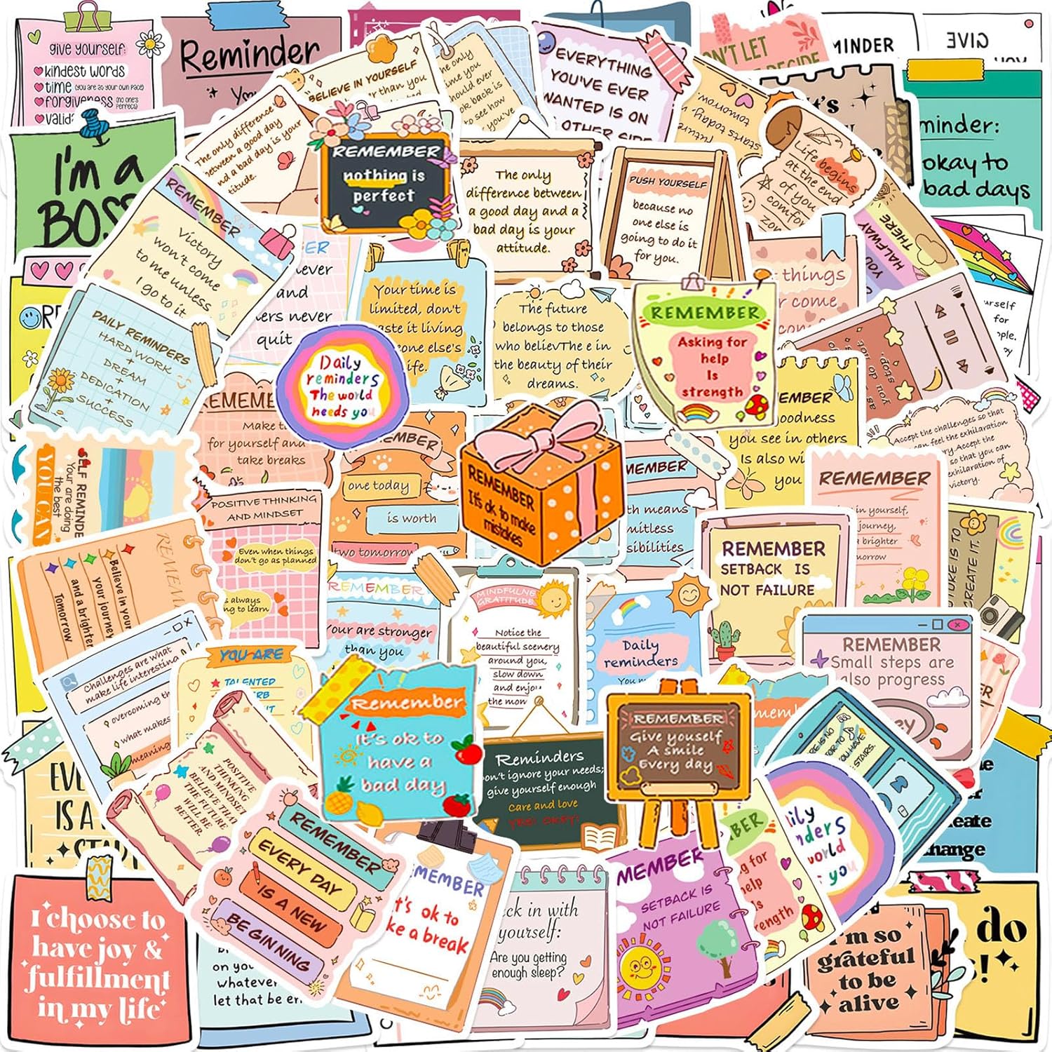 🎄Package Include: 100Pcs completely non-repeating Cute VSCO Aesthetic stickers. The stickers are easy to stick repeatedly or peel off, No residue is left. Length and width about 1.5-3.6 inch (4-8 cm).